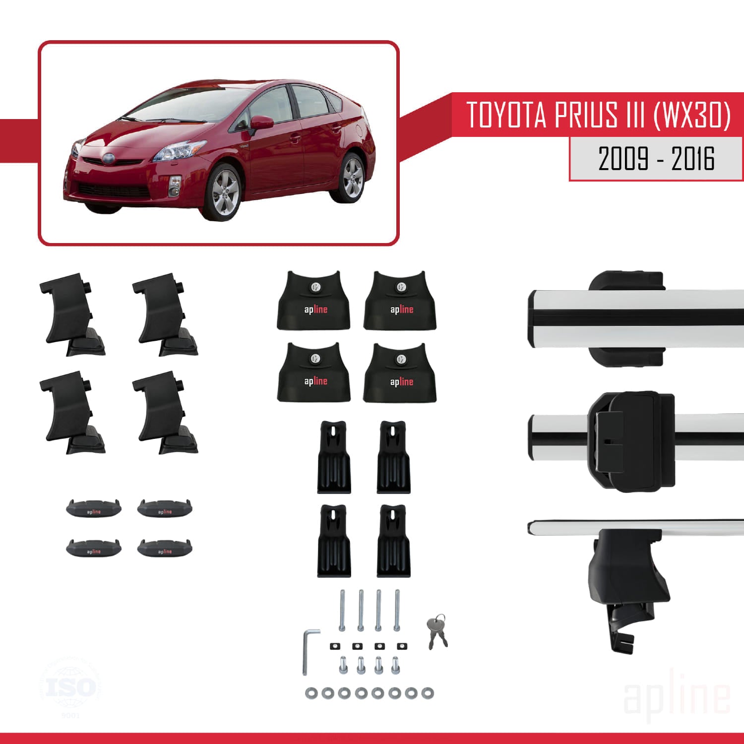 Compatible avec Toyota Prius 3 (XW30) 2009-2016 ACE-4 Barres de Toit Railing Porte-Bagages de Voiture Gris Aluminium 2 Barres