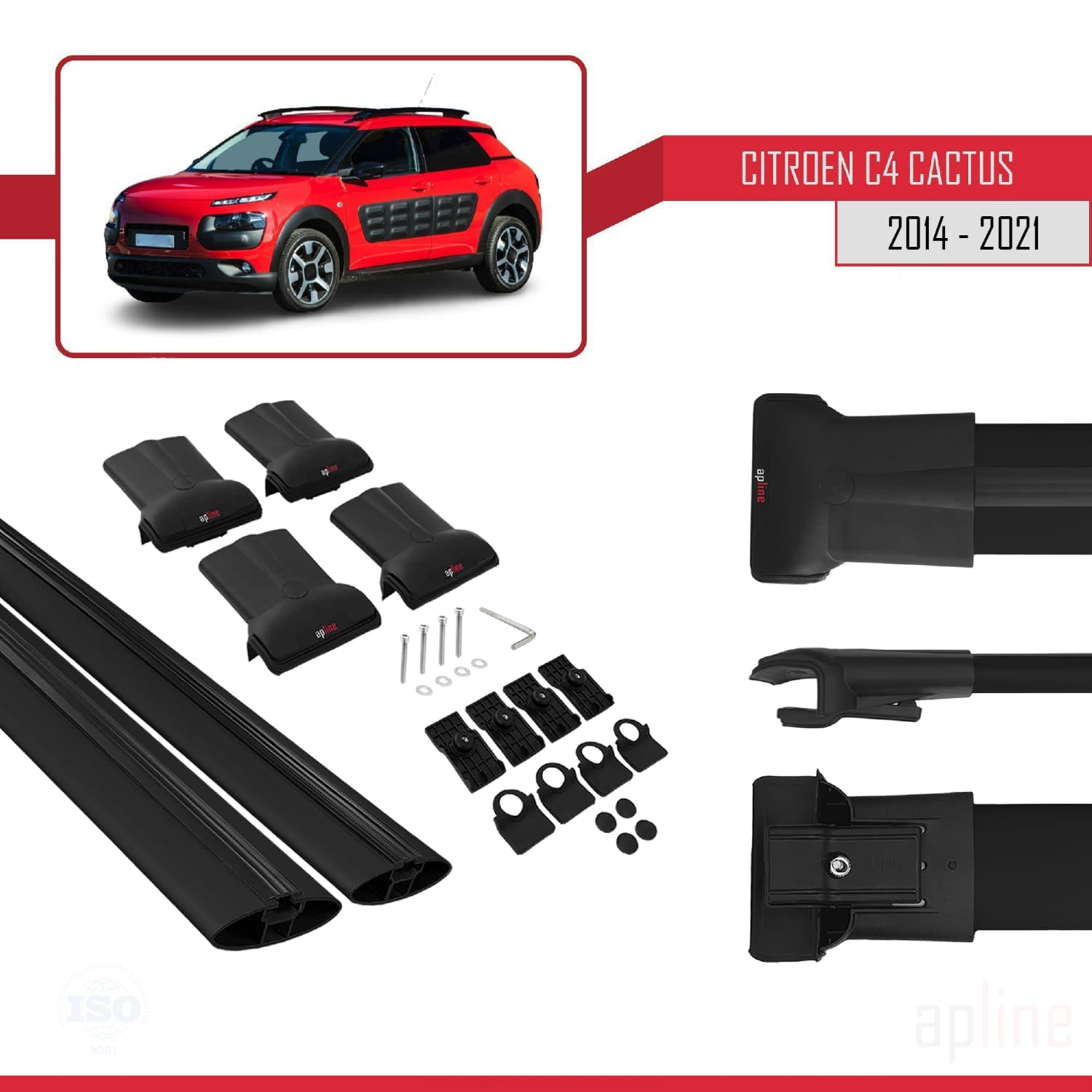 Kompatibel mit Citroen C4 Cactus 2014-2021 FLY Modell Dachgepäckträger, schwarzes Aluminium, 2 Stangen