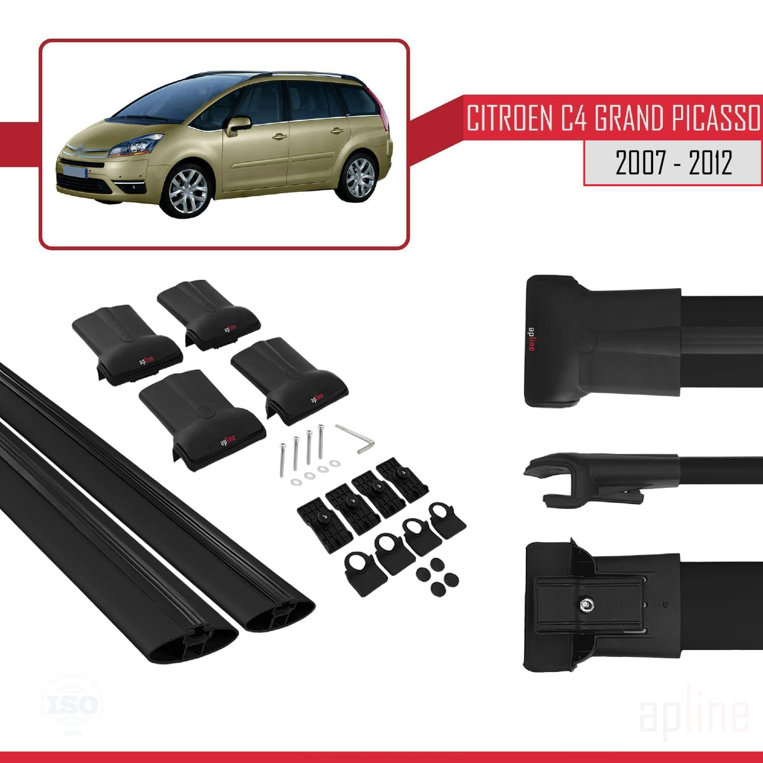 Kompatibel mit Citroen Grand C4 Picasso 2007-2012 FLY Modell Dachgepäckträger, schwarzes Aluminium, 2 Stangen