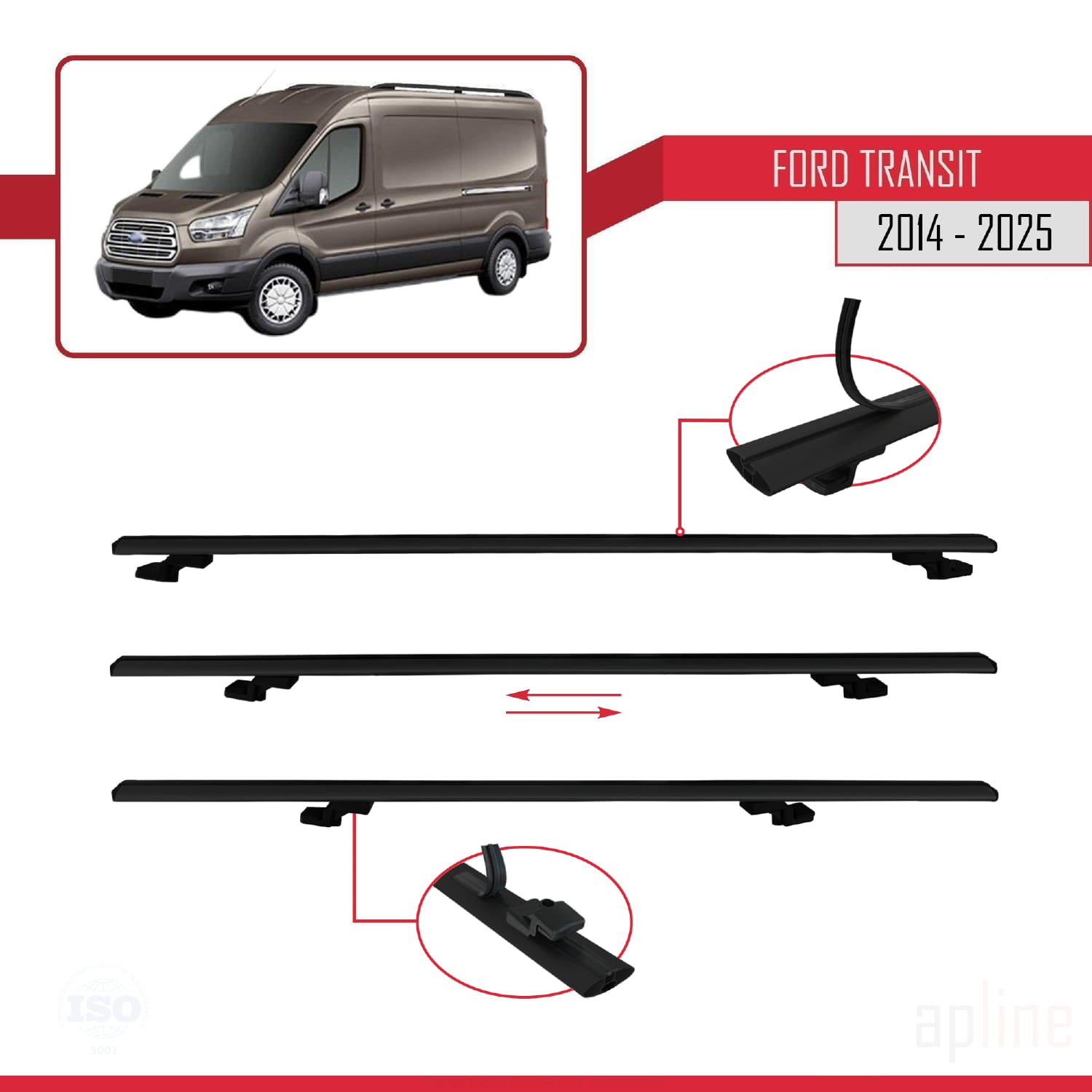 Kompatibel mit Ford Transit 2014-2025 BASIC Modell Dachgepäckträger, schwarzes Aluminium, 3 Stangen