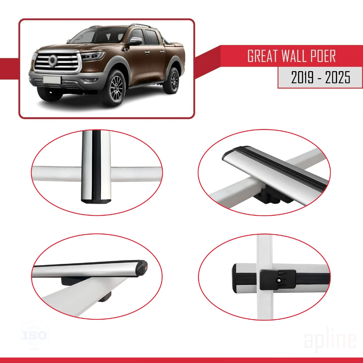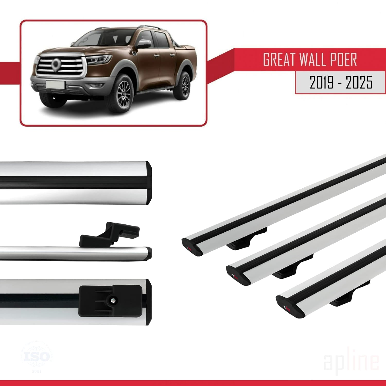 Kompatibel mit Great Wall Power 2019-2025 BASIC Modell Dachgepäckträger, graues Aluminium, 3 Stangen