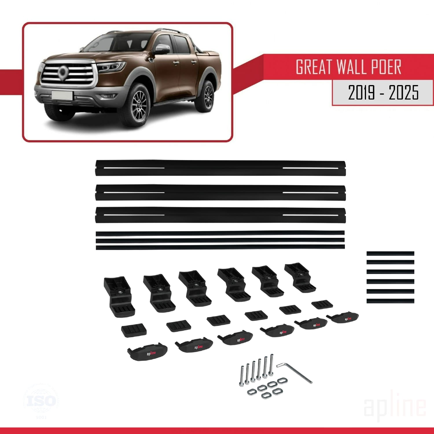Compatible with Great Wall Poer 2019-2025 BASIC Model Car Roof Rack Cross Bar Black Aluminium 3 Bars