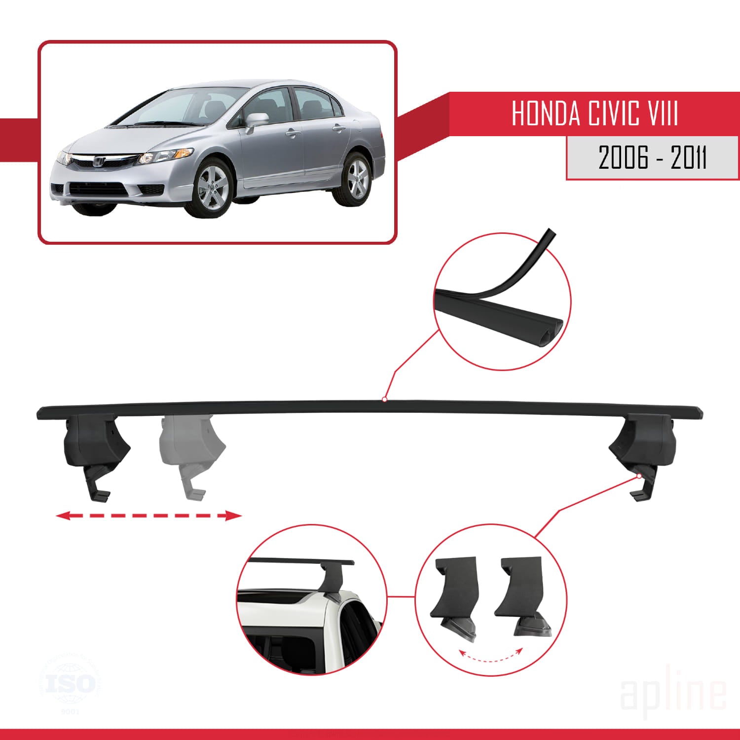 Compatible with Honda Civic 8 V3 Sedan 2006-2011 ACE-4 Car Roof Rack Cross Bar Black Aluminium 2 Bars