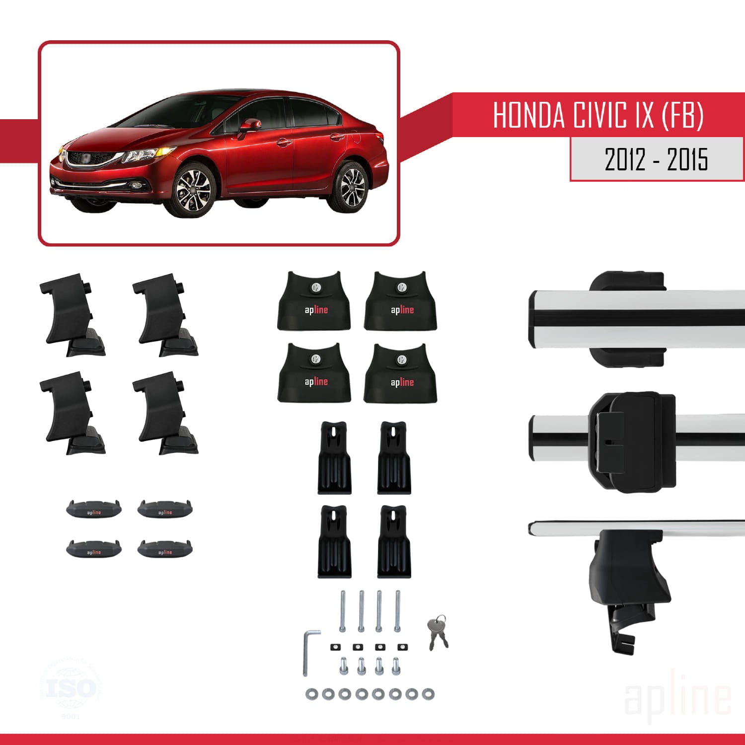 Compatible with Honda Civic 9 (FB) Sedan 2012-2015 ACE-4 Car Roof Rack Cross Bar Grey Aluminium 2 Bars