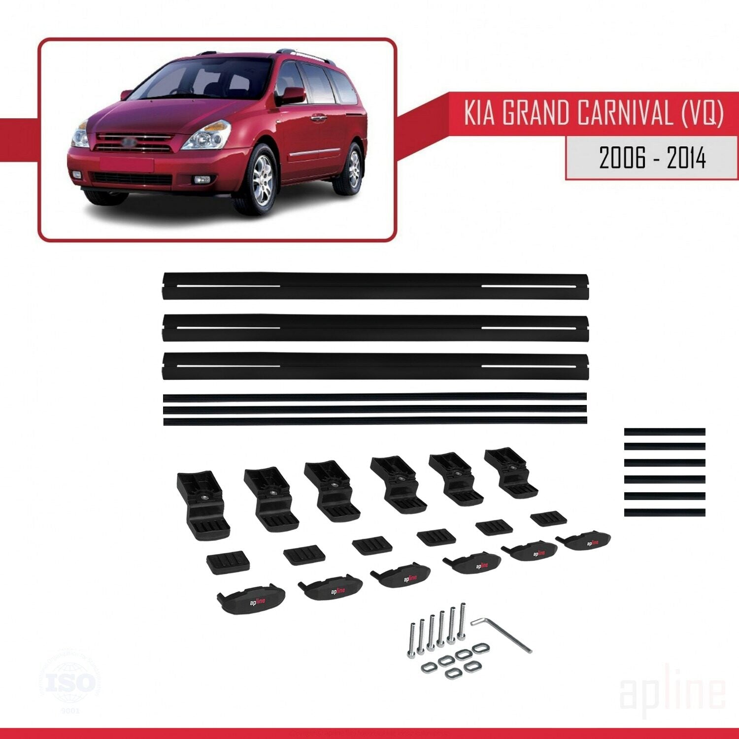 Compatible avec Kia Carnival 2 (VQ) 2006-2014 BASIC Model Barres de Toit Railing Porte-Bagages de Voiture Noir Aluminium 3 Barres