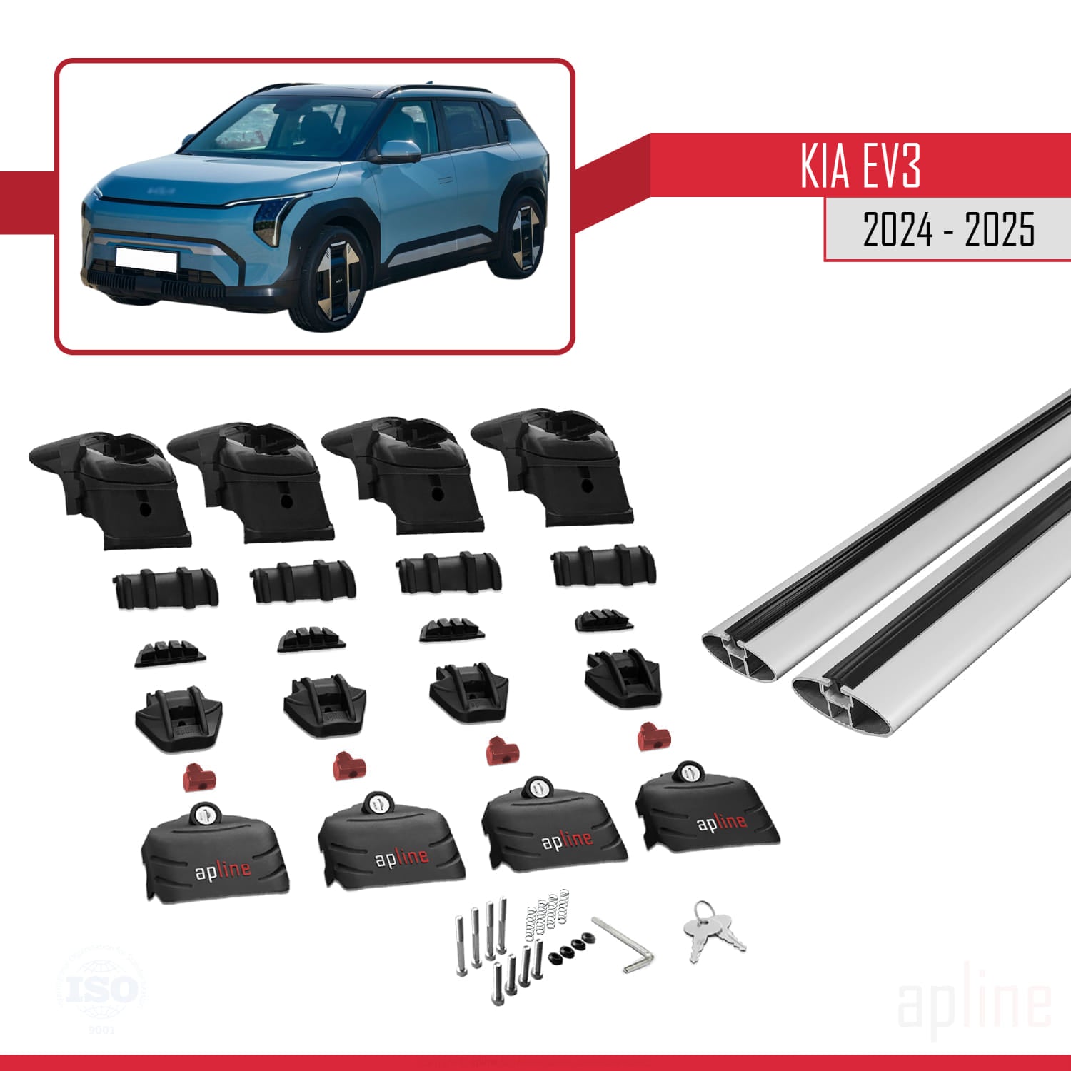 Compatible with Kia EV3 2024-2025 ACE-2 Car Roof Rack Cross Bar Grey Aluminium 2 Bars