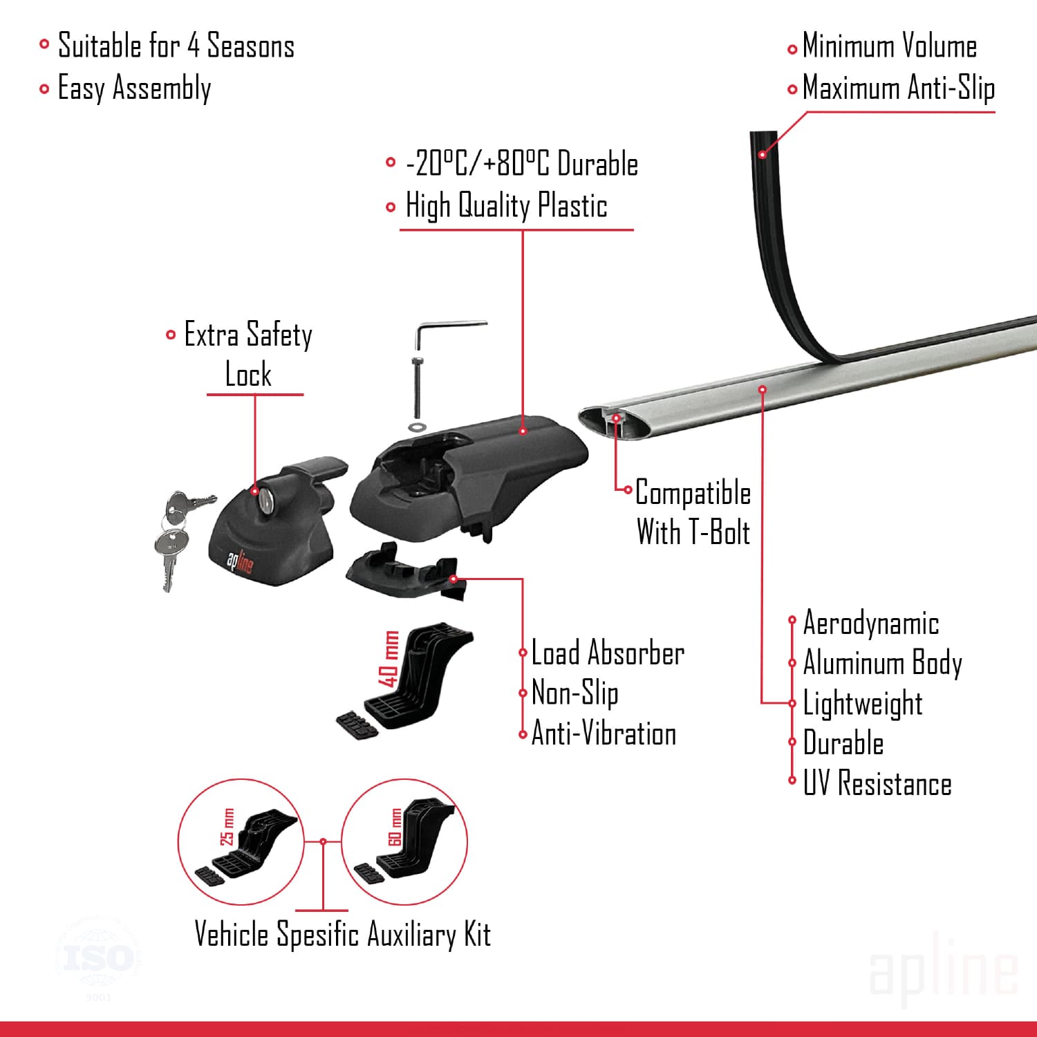 Il est utilisé pour transporter des charges sur votre véhicule. Il est nécessaire pour l'installation de porte-vélos, de porte-skis et de produits de type coffre de toit. Ce produit est monté sur les barres de toit du véhicule. La limite maximale de charge transportée avec ce produit dans un véhicule en mouvement est de 75 kg. (Indépendamment de 2 ou 3 barres en aluminium, la limite légale est de 75 kg).