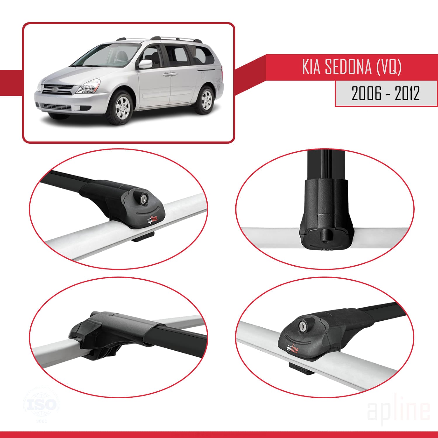 Compatible avec Kia Sedona 2 (VQ) 2006-2012 ACE-1 Barres de Toit Railing Porte-Bagages de Voiture Noir Aluminium 3 Barres