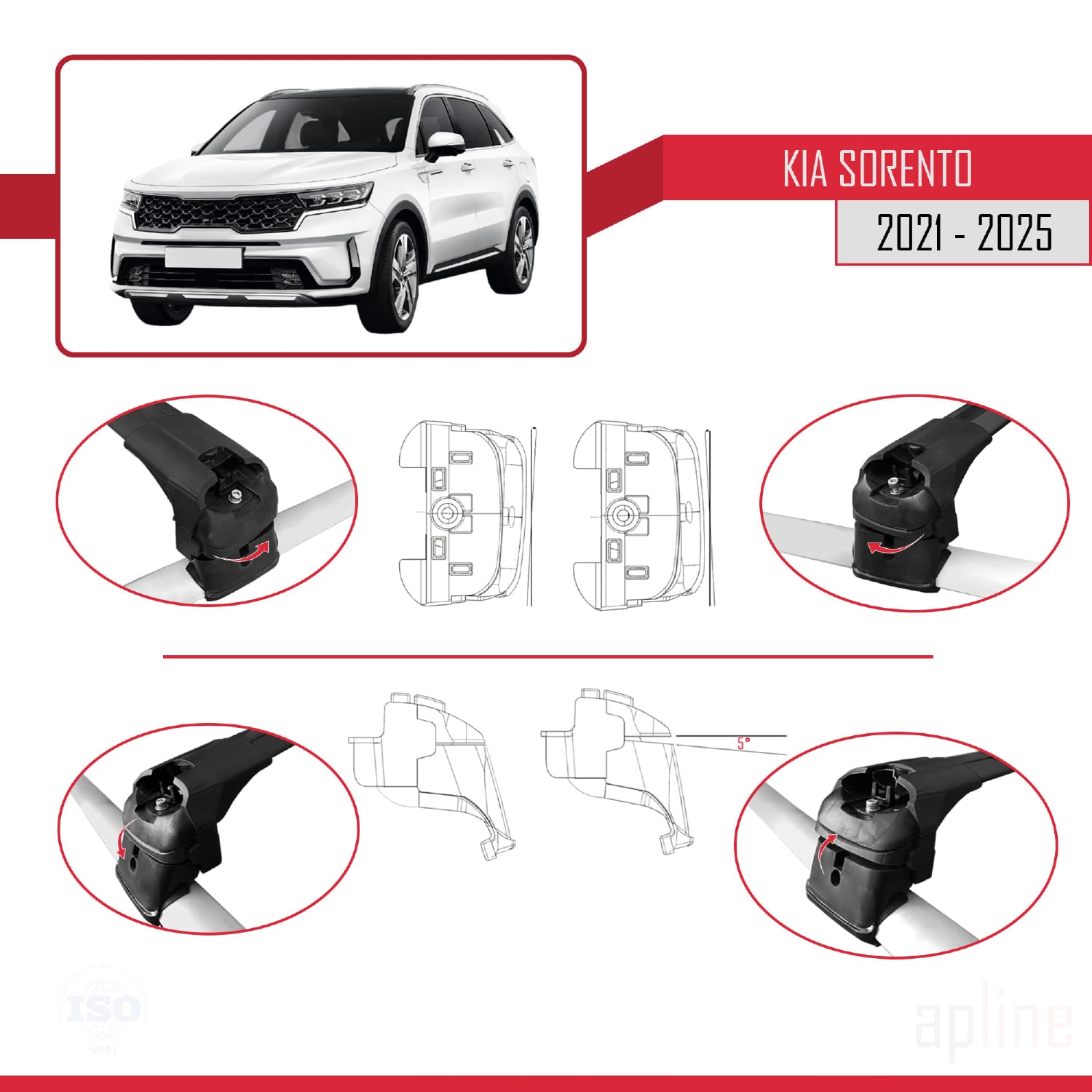 It grips the vehicle roof rails from the top and sides and is firmly fixed. The bracket, which grips the roof rails during connection, has the ability to rotate between 3 - 5 degrees both in the XY plane in the Z axis and in the ZY plane in the X axis thanks to its patented structure. It also has the ability to move vertically in the Z axis.