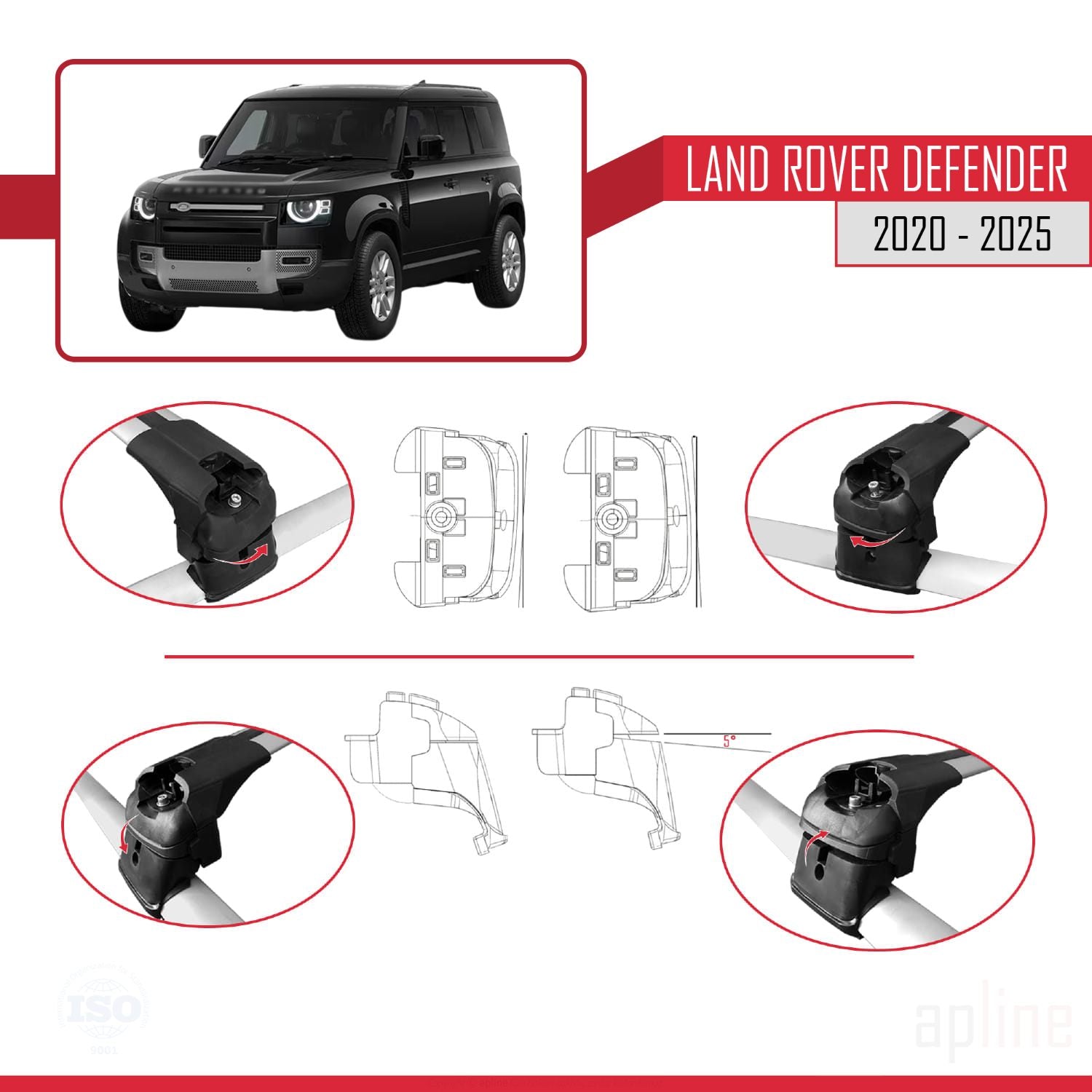 Compatible avec Land Rover Defender 2020-2025 ACE-2 Barres de Toit Railing Porte-Bagages de Voiture Gris Aluminium 2 Barres