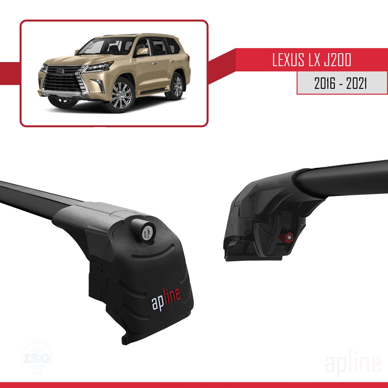 Compatible avec Lexus LX 3 (J200) 2016-2021 ACE-2 Barres de Toit Railing Porte-Bagages de Voiture Noir Aluminium 2 Barres