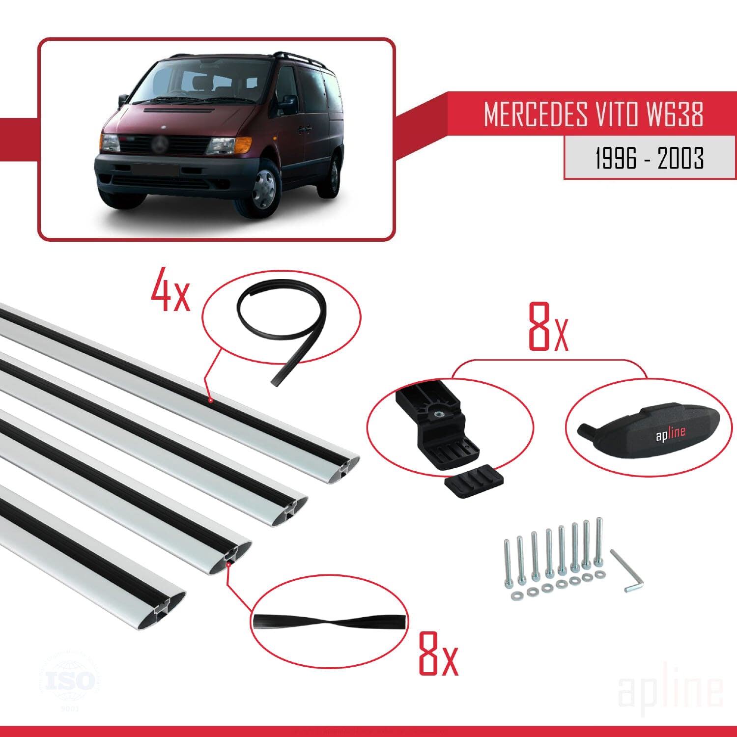 Compatible with Mercedes Vito (W638) 1996-2003 BASIC Model Car Roof Rack Cross Bar Grey Aluminium 4 Bars