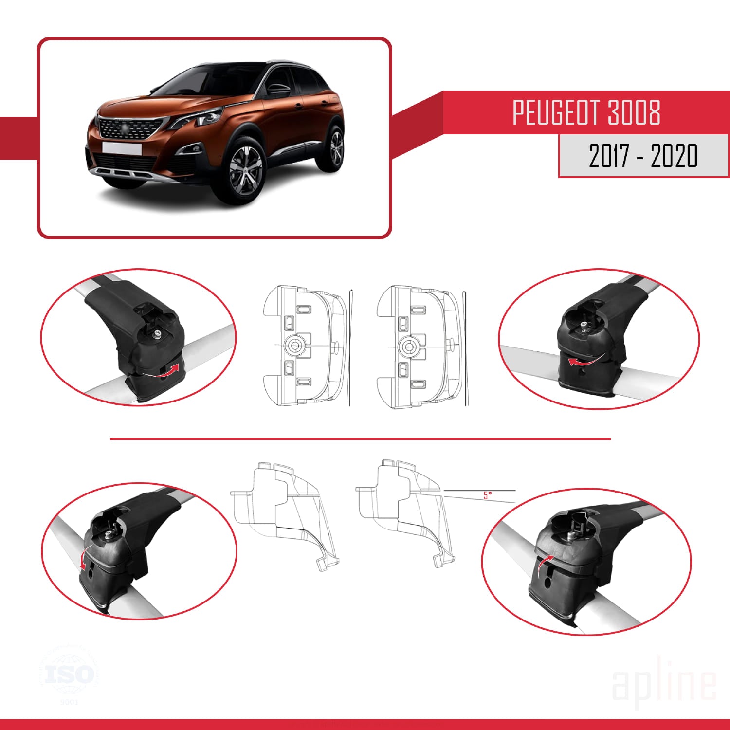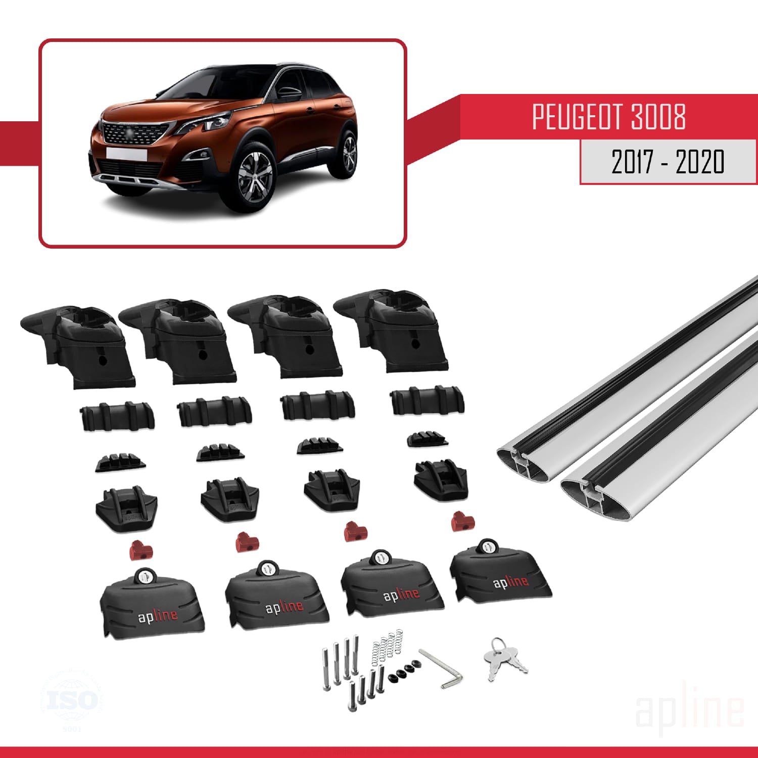 Compatible with Peugeot 3008 II (P84) Pre-Facelift 2017-2020 ACE-2 Car Roof Rack Cross Bar Grey Aluminium 2 Bars