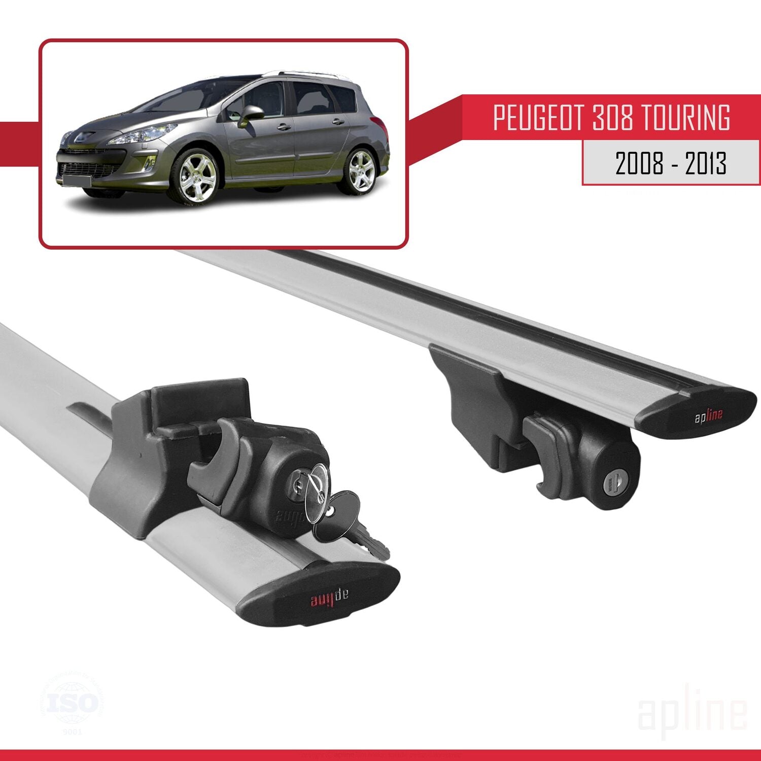 Compatible with Peugeot 308 (T7) SW 2008-2013 HOOK Model Car Roof Rack Cross Bar Grey Aluminium 2 Bars