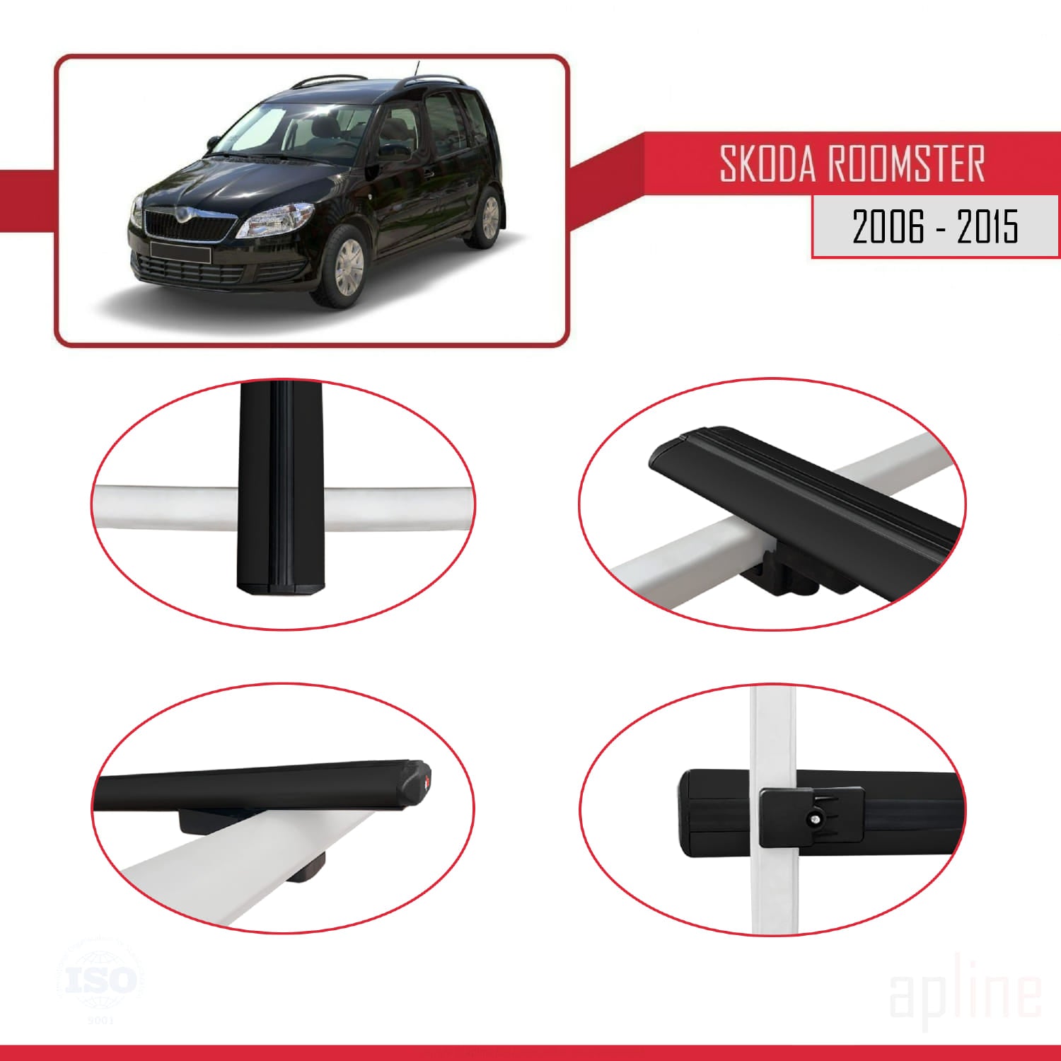 Compatible avec Skoda Roomster 2006-2015 BASIC Model Barres de Toit Railing Porte-Bagages de Voiture Noir Aluminium 3 Barres