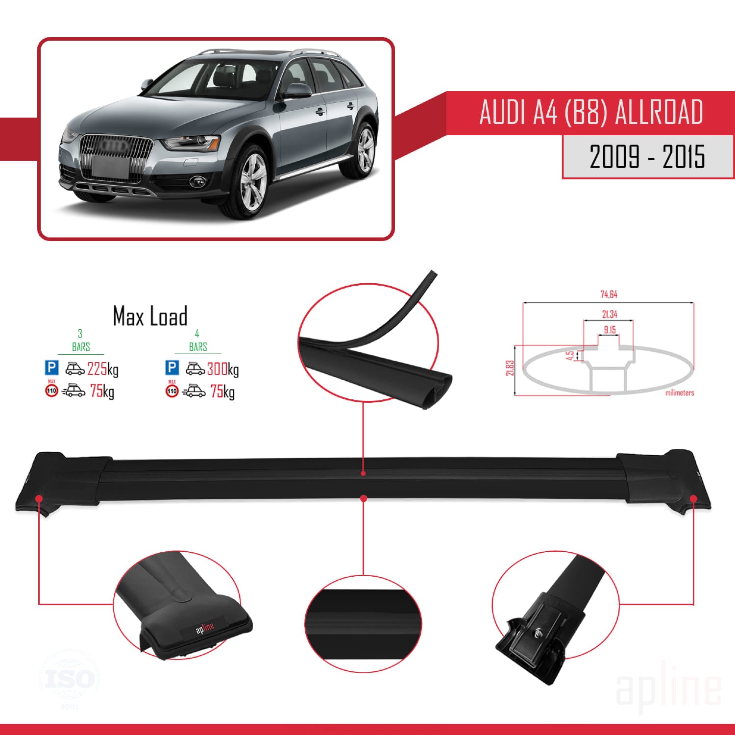 Kompatibel mit A4 (B8) Allroad 2009-2015 FLY Modell Dachgepäckträger, schwarzes Aluminium, 3 Querträger