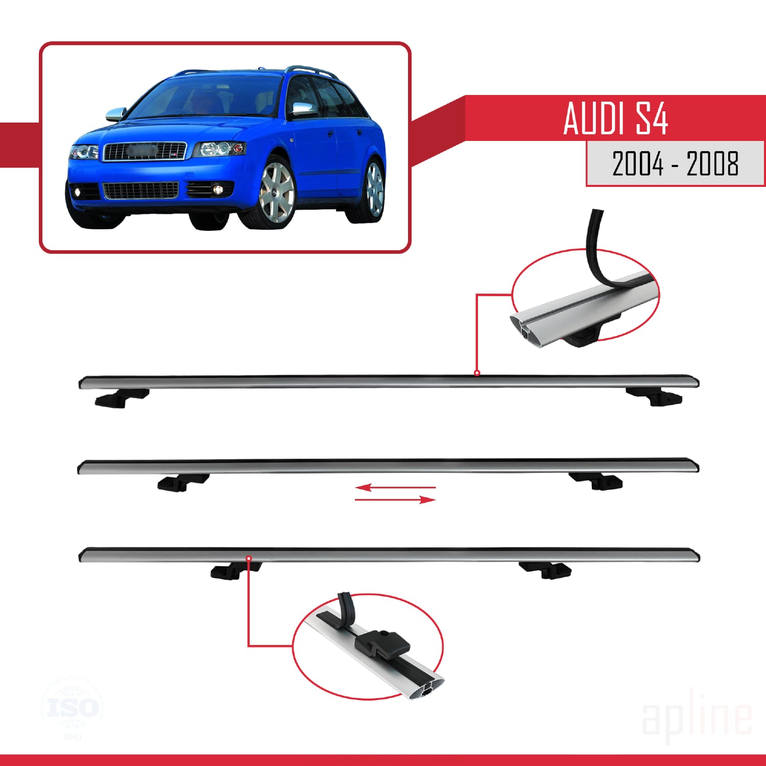 Kompatibel mit Audi S4 2004-2008 Basismodell Dachgepäckträger, graues Aluminium, 2 Stangen