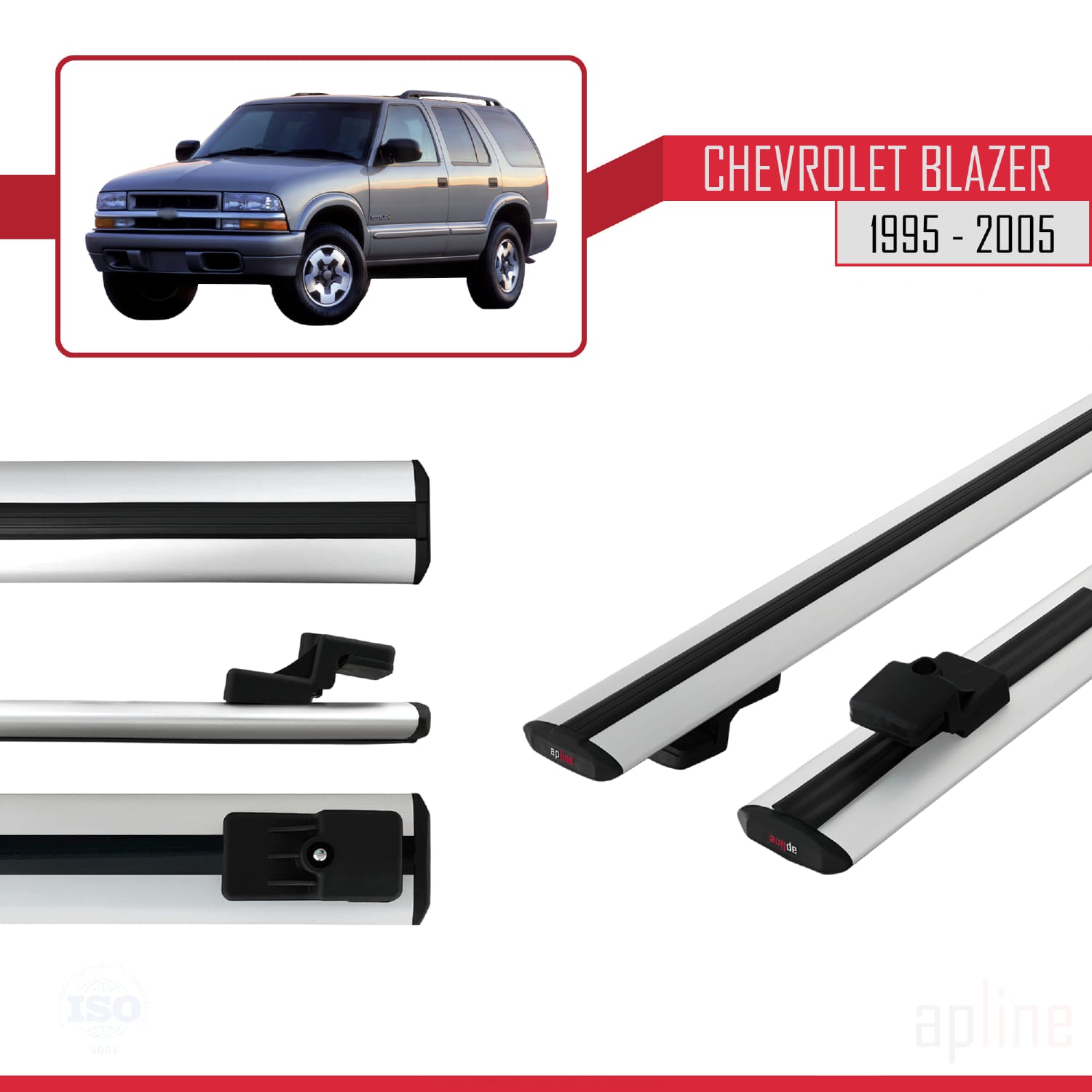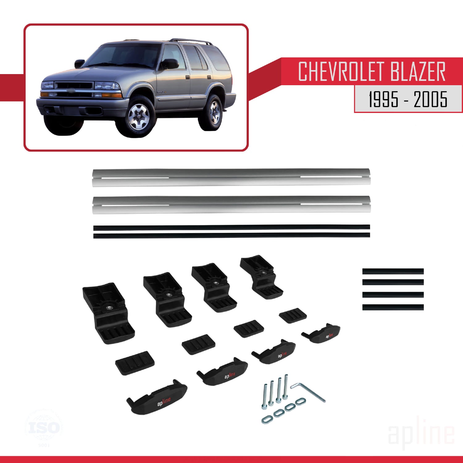 Kompatibel mit Chevrolet Blazer 1995-2005 BASIC Modell Dachgepäckträger, graues Aluminium, 2 Stangen