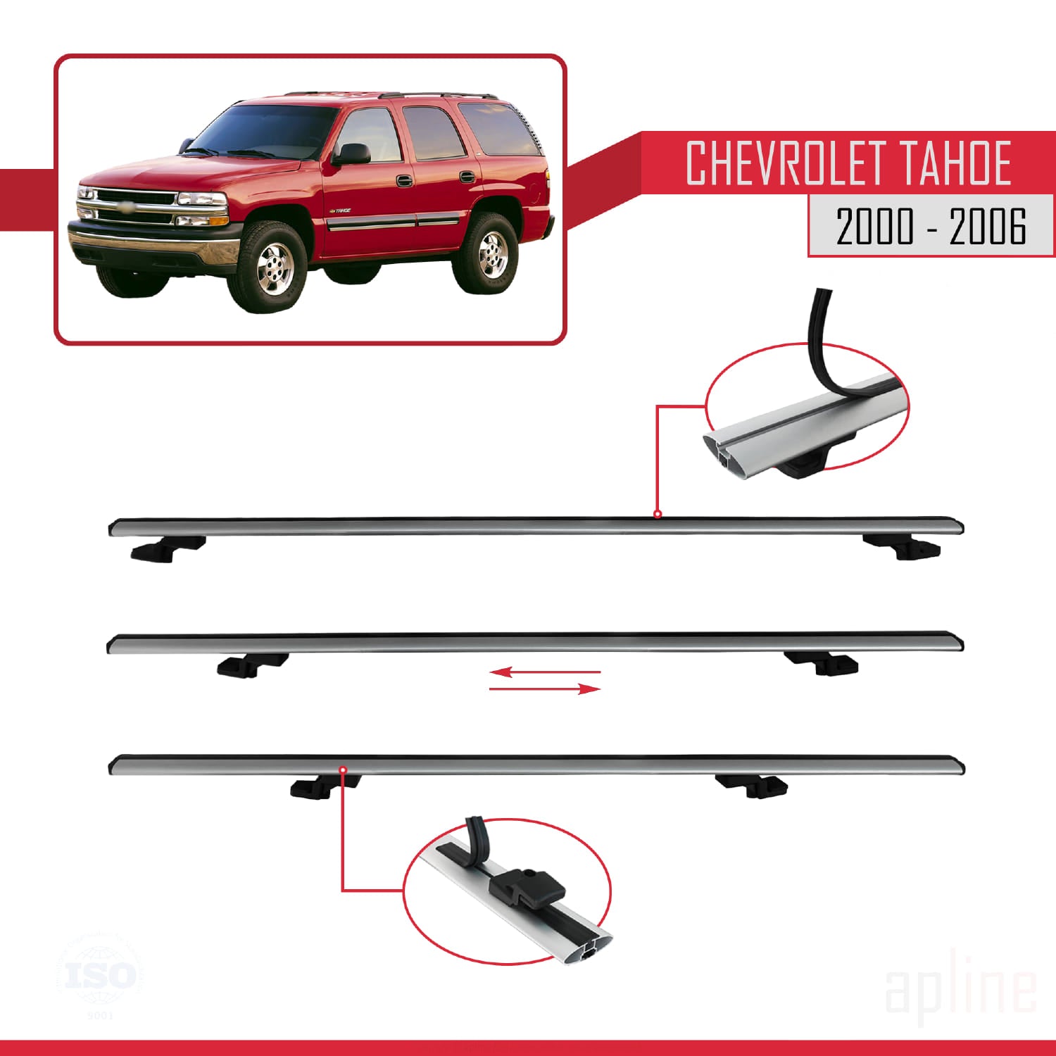 Kompatibel mit Chevrolet Tahoe 2000-2006 BASIC Modell Dachgepäckträger, graues Aluminium, 2 Stangen