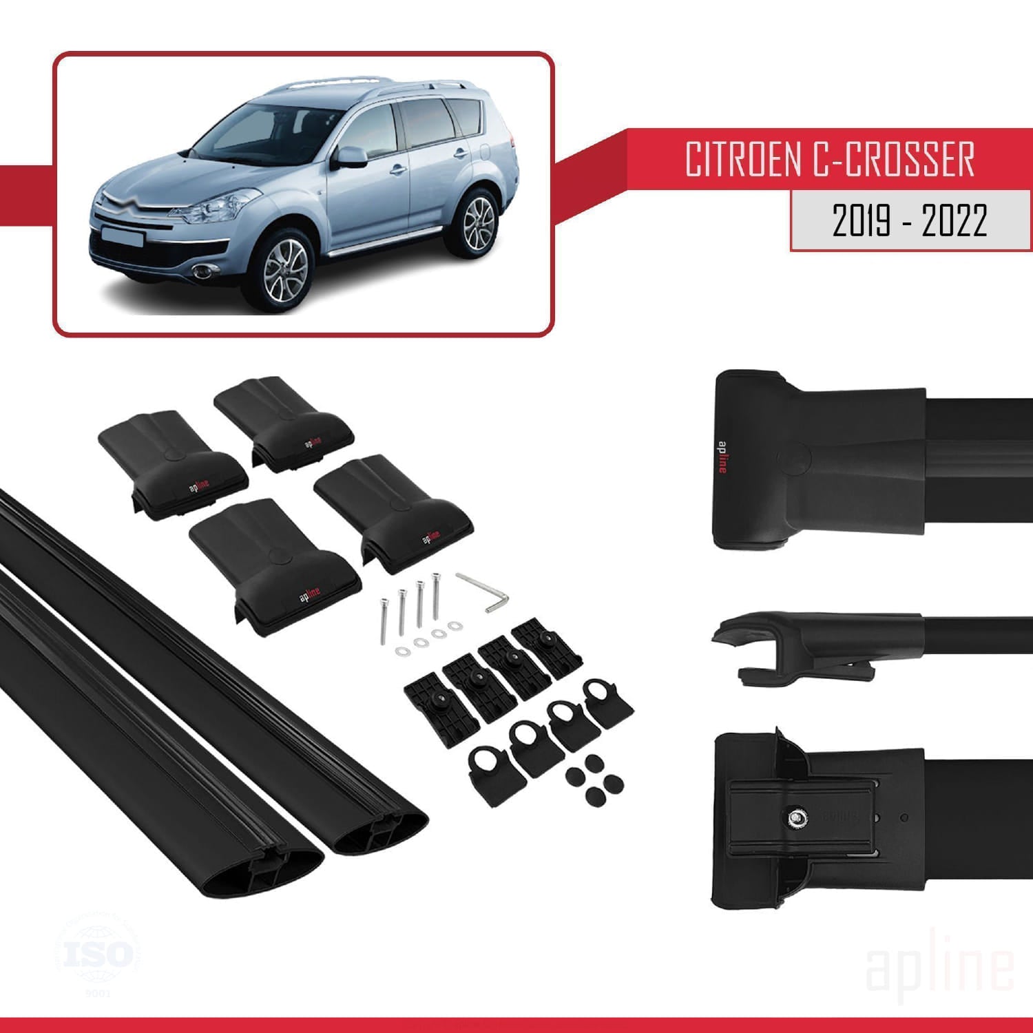 Kompatibel mit Citroen Berlingo 3 (K9) 2019-2022 FLY Modell Dachgepäckträger, schwarzes Aluminium, 2 Stangen