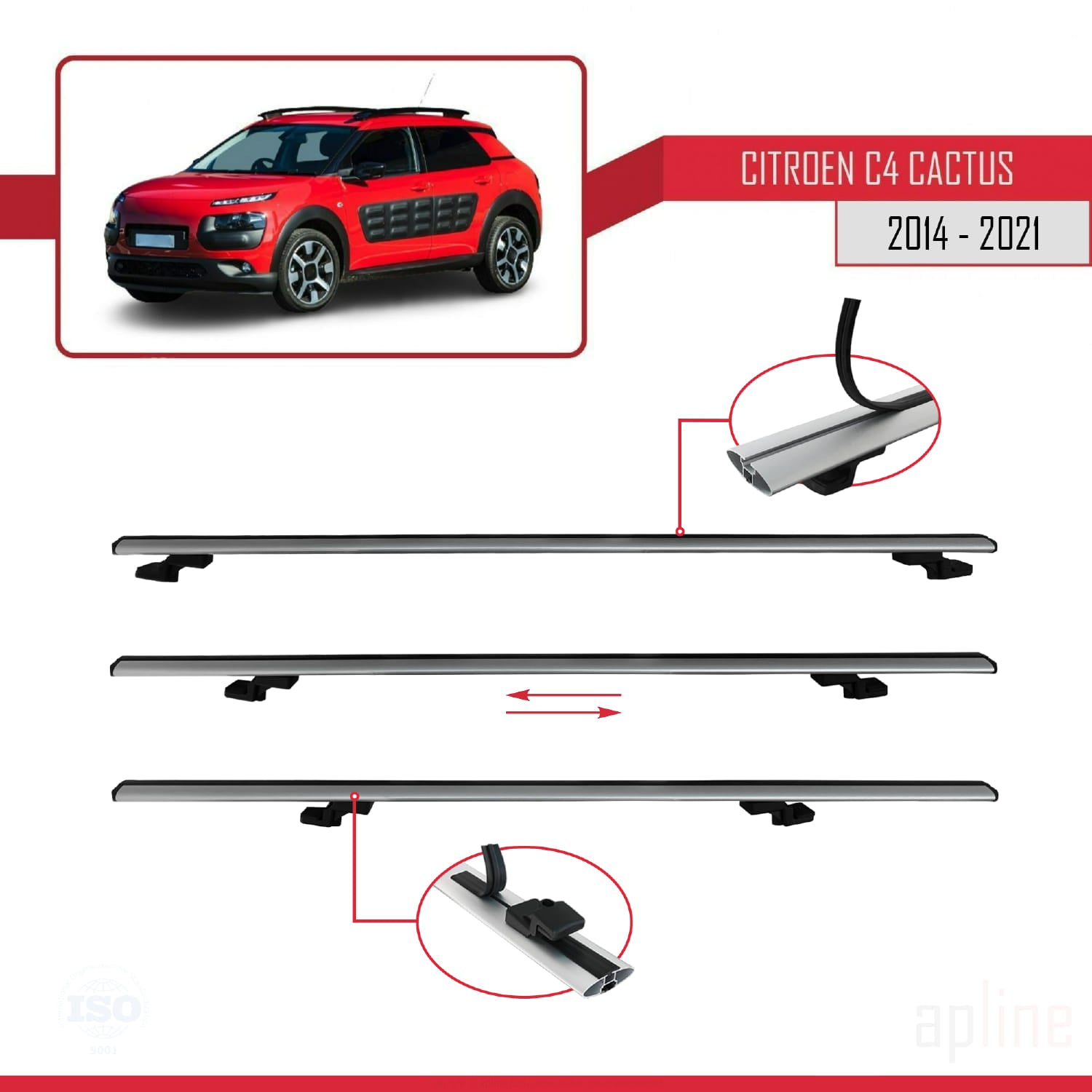 Kompatibel mit Citroen C4 Cactus 2014-2021 Basismodell Dachgepäckträger, graues Aluminium, 2 Stangen