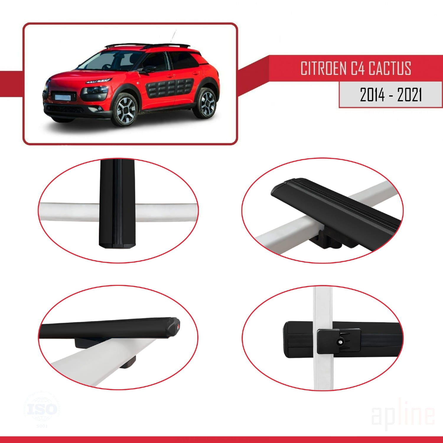 Kompatibel mit Citroen C4 Cactus 2014-2021 BASIC Modell Dachgepäckträger, schwarzes Aluminium, 2 Stangen