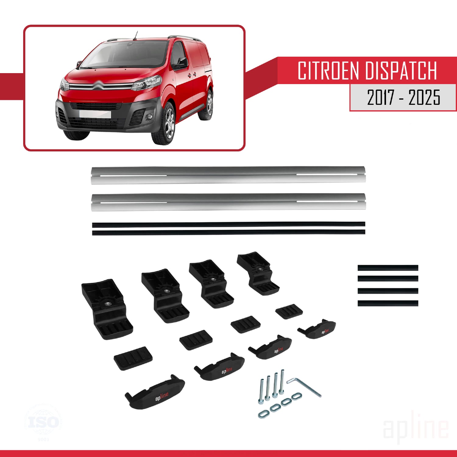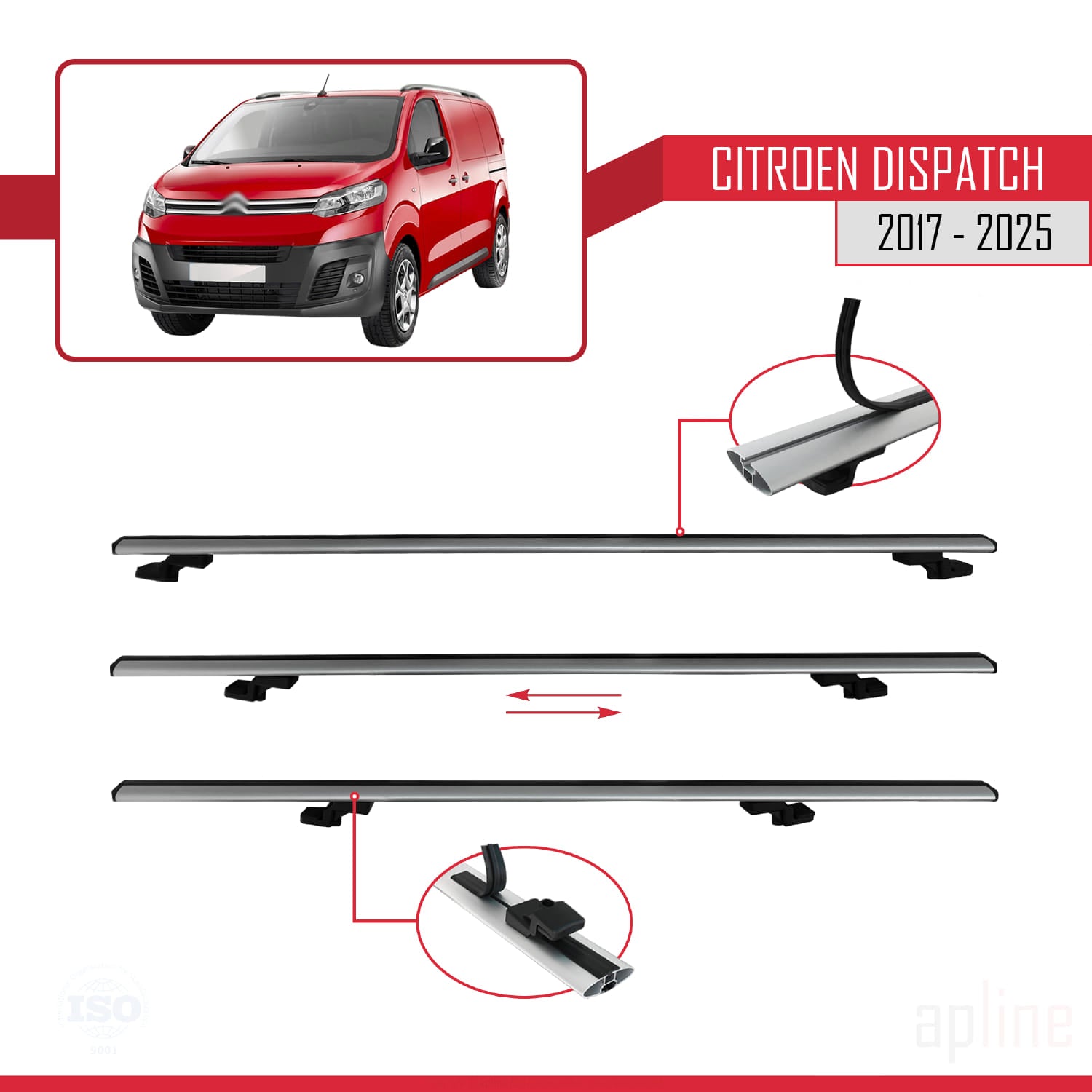 Kompatibel mit Citroen Dispatch (K0) 2017-2025 Basismodell Dachgepäckträger, graues Aluminium, 2 Stangen