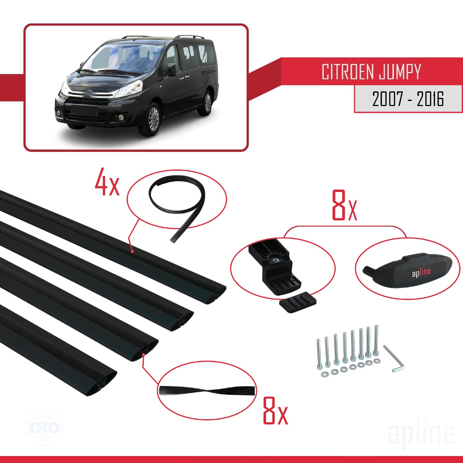Kompatibel mit Citroen Jumpy 2 (G9) 2007-2016 Basismodell Dachgepäckträger, schwarzes Aluminium, 4 Stangen