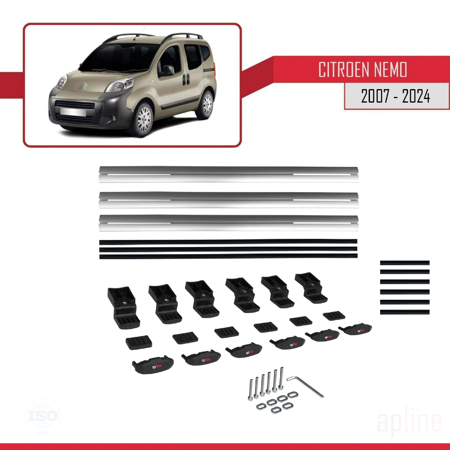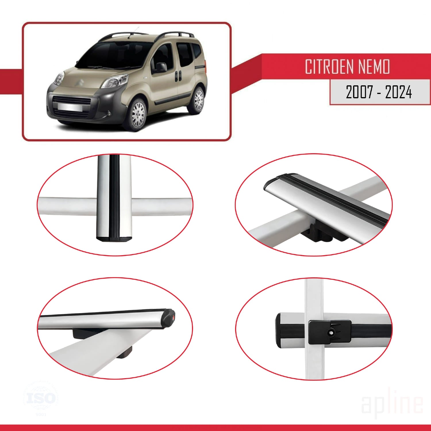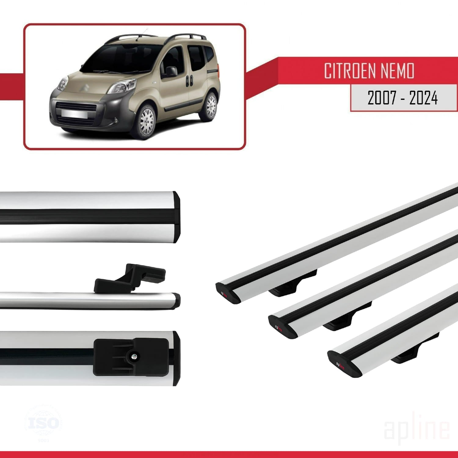 Kompatibel mit Citroen Nemo 3 (225) 2007-2024 Basismodell Dachgepäckträger, graues Aluminium, 3 Stangen