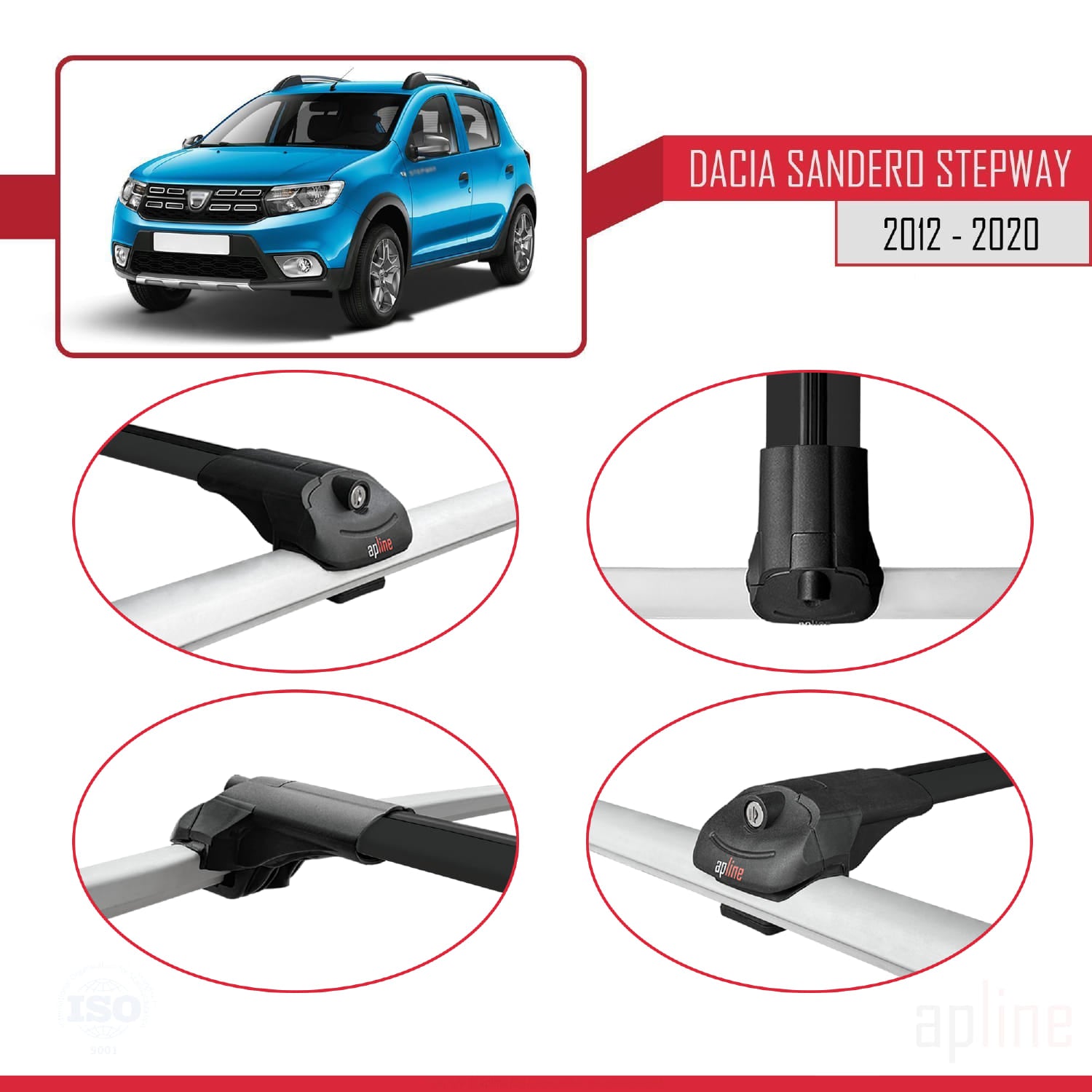 Kompatibel mit Dacia Sandero Stepway 2 2012-2020 ACE-1 Dachgepäckträger, Reling, Gepäckträger, schwarzes Aluminium, 3 Stangen