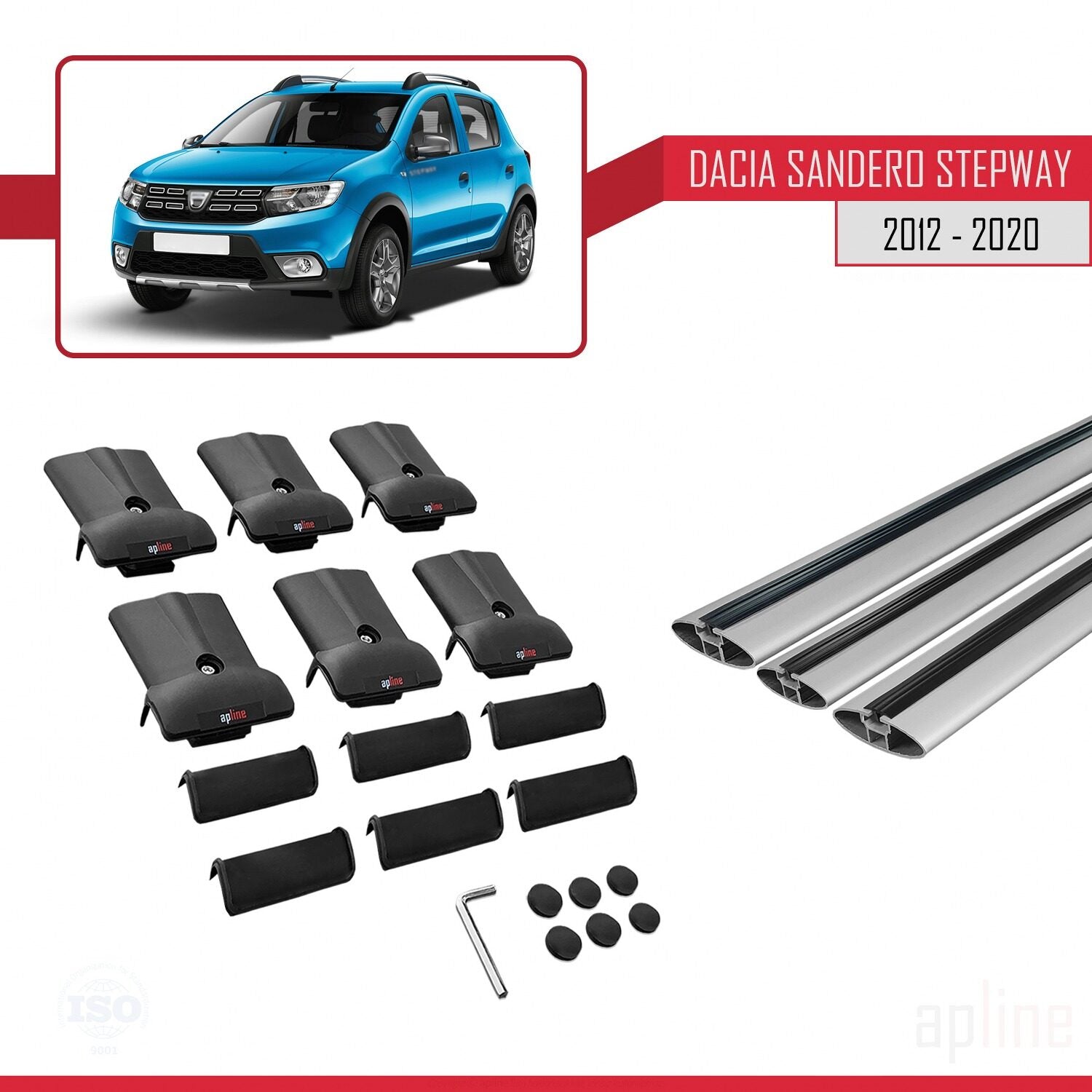 Kompatibel mit Dacia Sandero Stepway 2 2012-2020 FLY Modell Dachgepäckträger, graues Aluminium, 3-Stangen