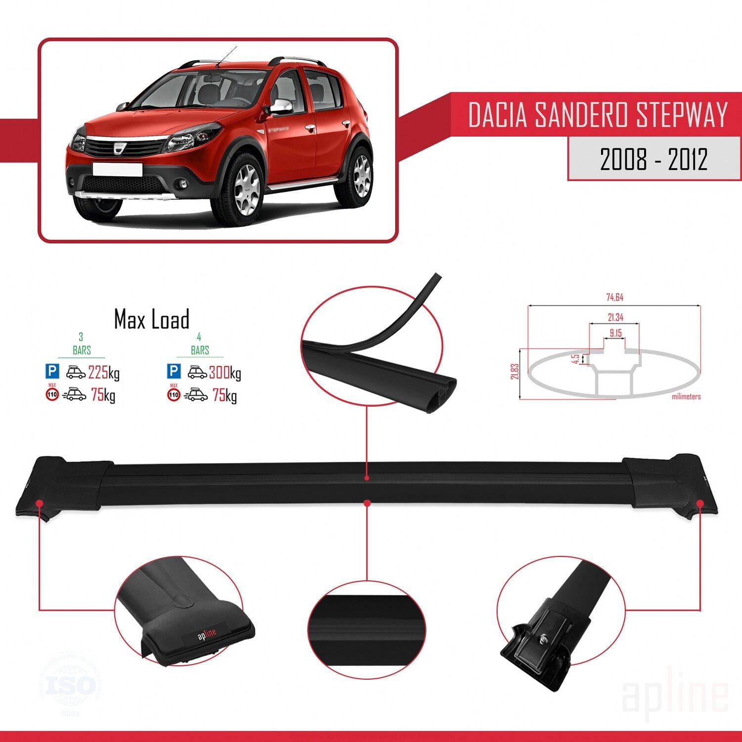 Kompatibel mit Dacia Sandero Stepway 2008-2012 FLY Modell Dachgepäckträger, Reling, Gepäckträger, schwarzes Aluminium, 3 Stangen