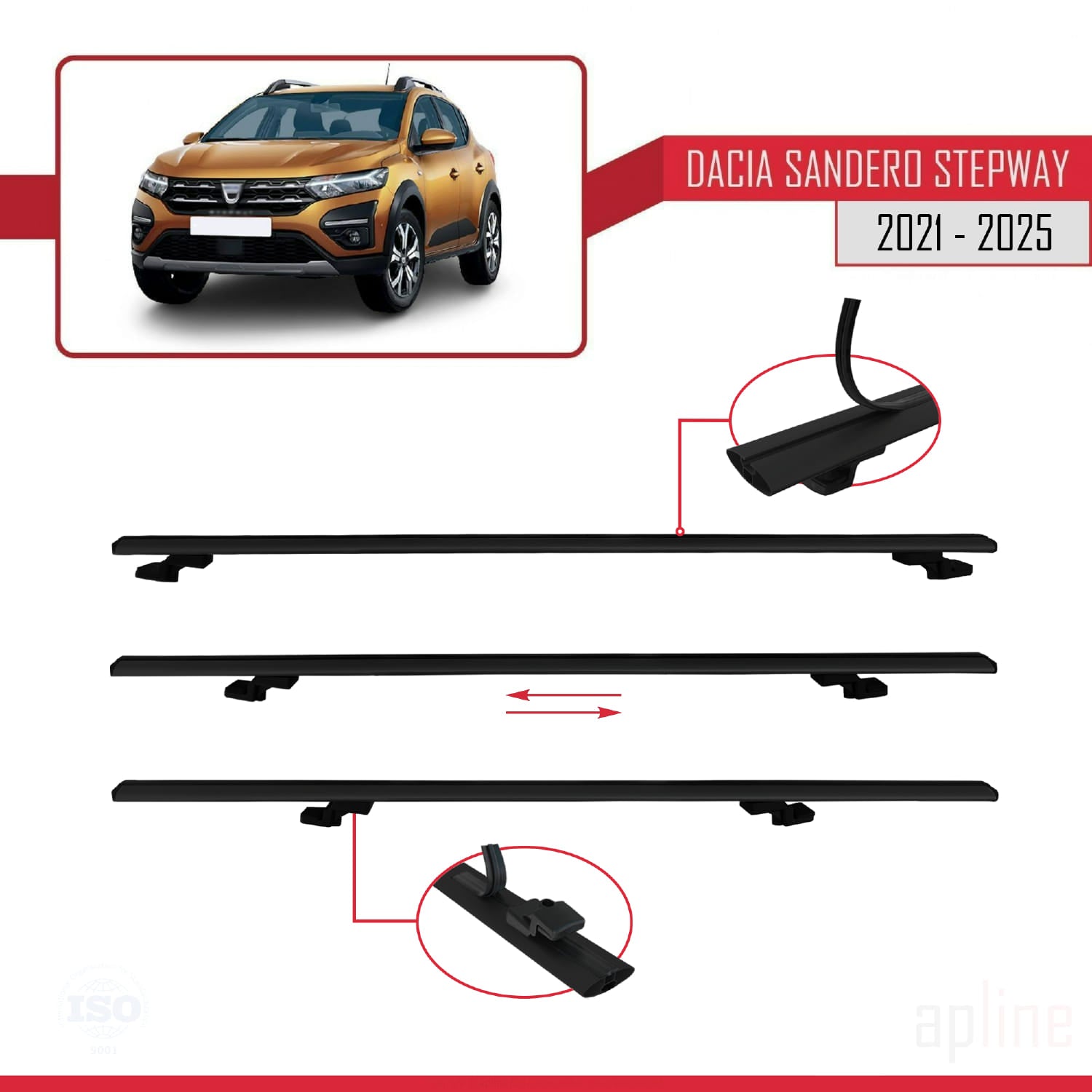 Compatible avec Dacia Sandero Stepway 3 2021-2025 BASIC Model Barres de Toit Railing Porte-Bagages de Voiture Noir Aluminium 3 Barres