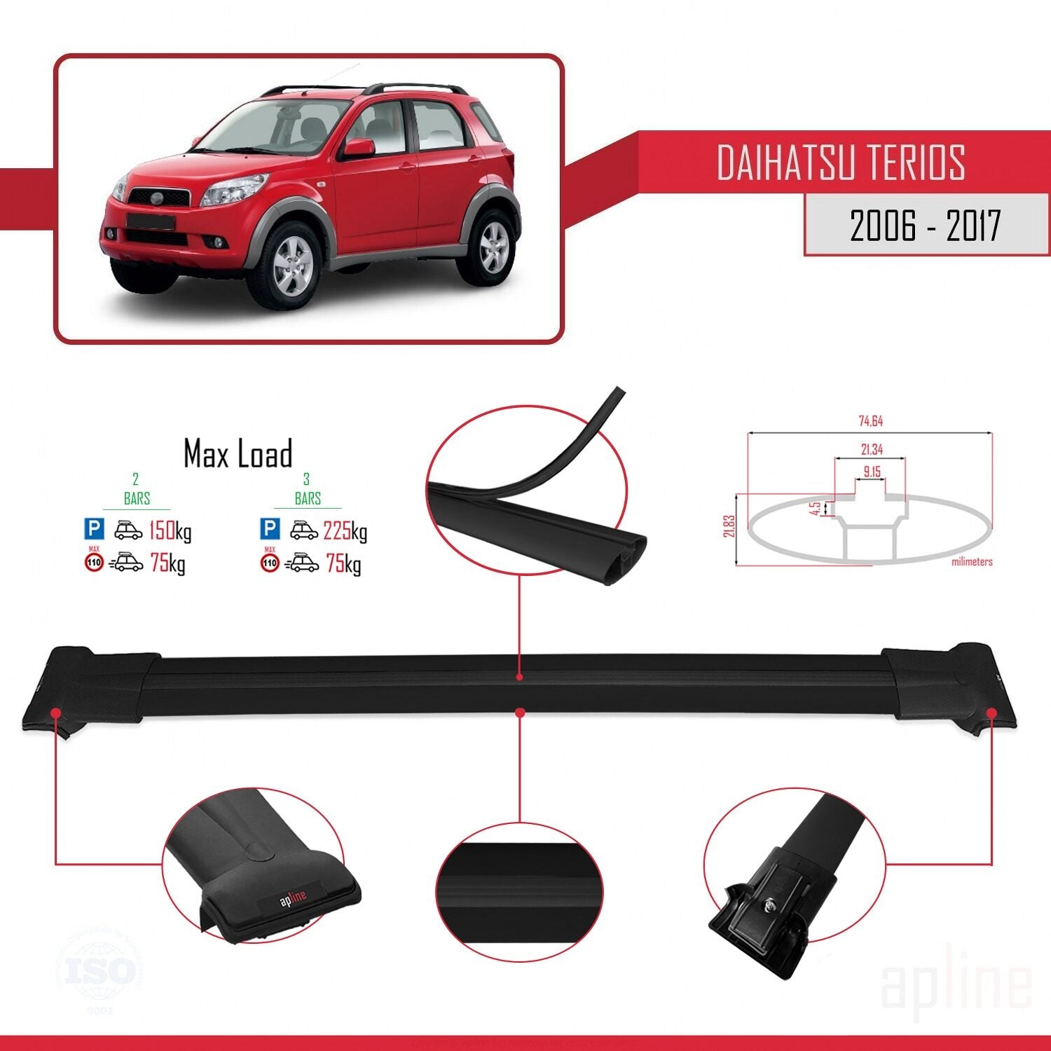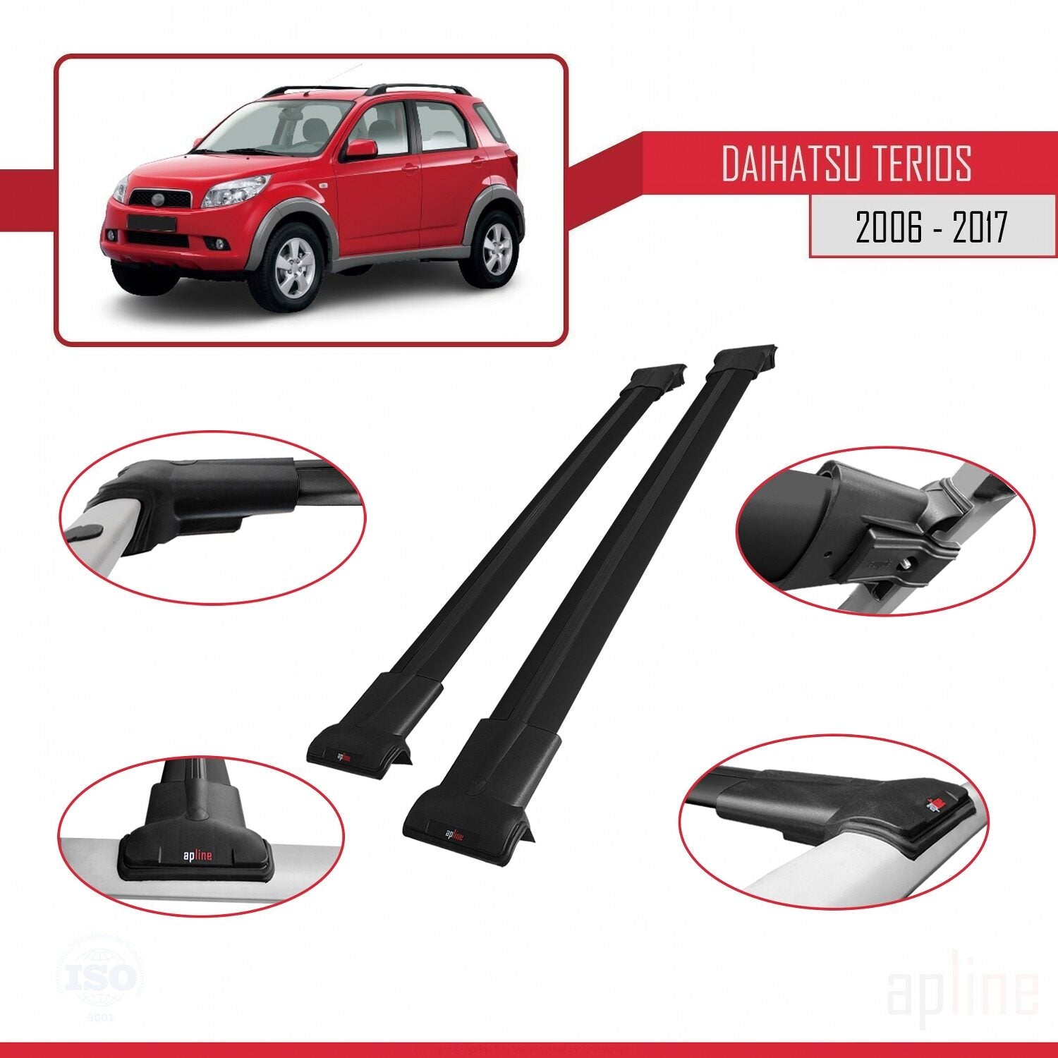 Kompatibel mit Daihatsu Terios 2 (J200) 2006-2017 FLY Modell Dachgepäckträger, schwarzes Aluminium, 2 Stangen