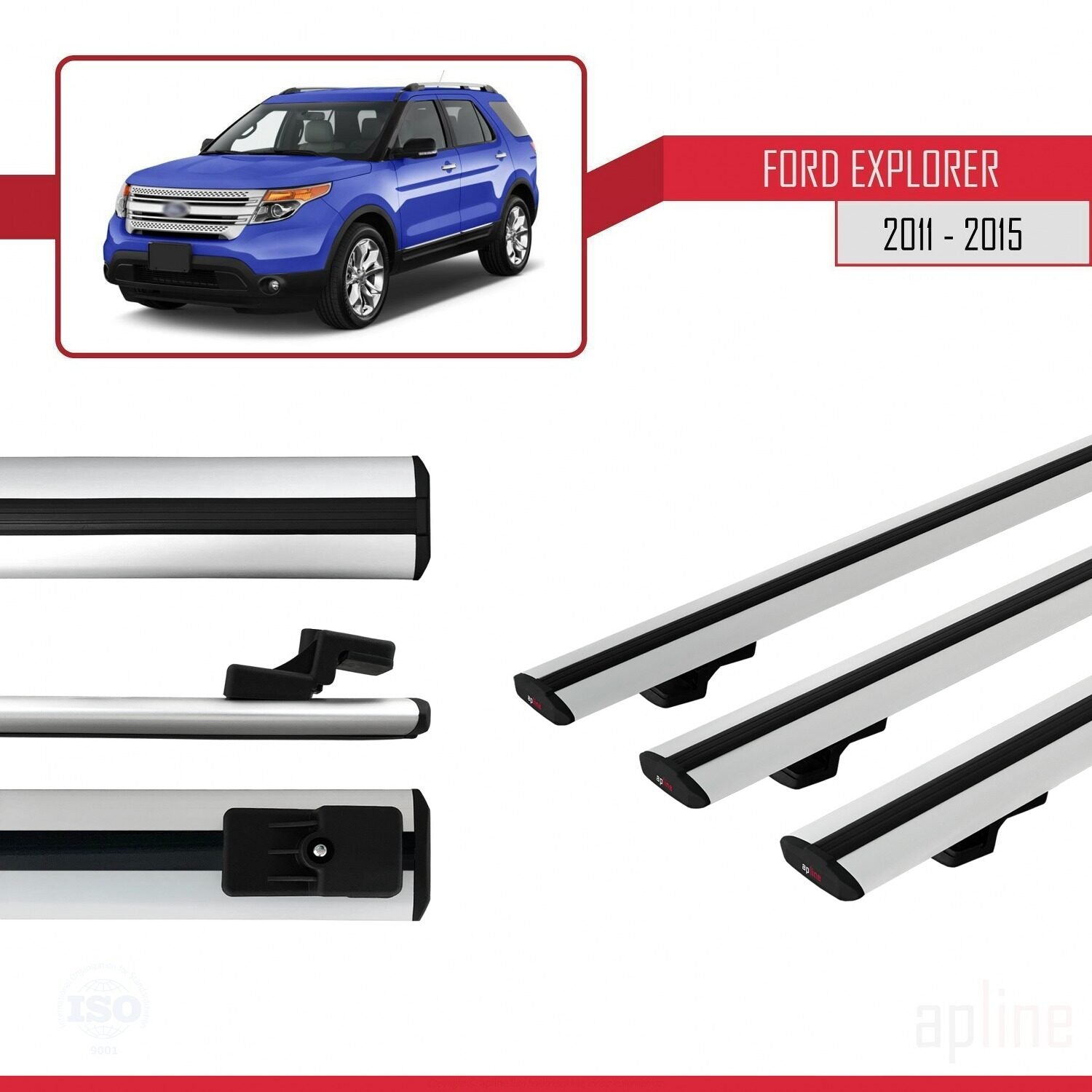 Kompatibel mit Ford Explorer 5 (U502) Vor-Facelift 2011-2015 Basismodell Dachgepäckträger, graues Aluminium, 3 Stangen