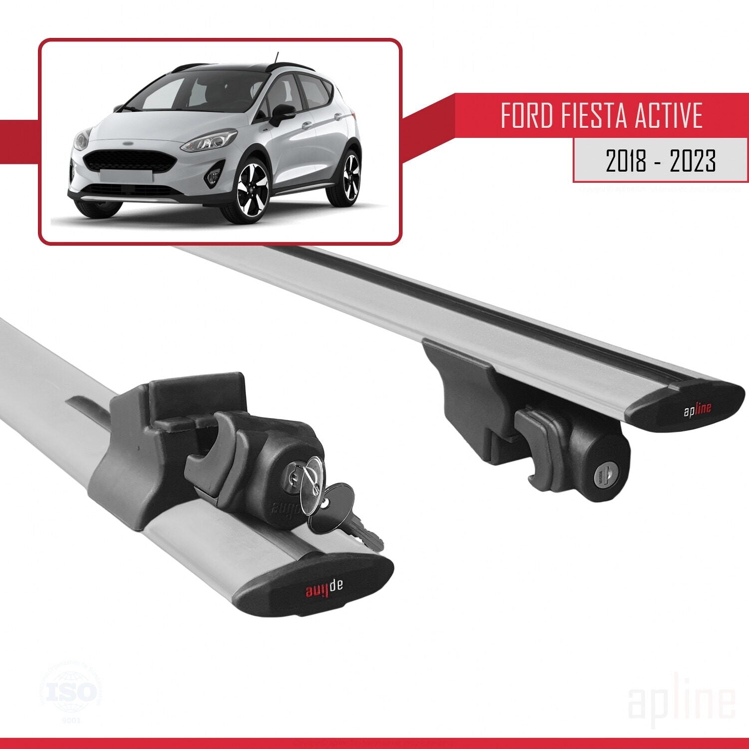 Kompatibel mit Ford Fiesta 7 Active 2018-2023 HOOK Modell Dachgepäckträger, graues Aluminium, 2 Stangen