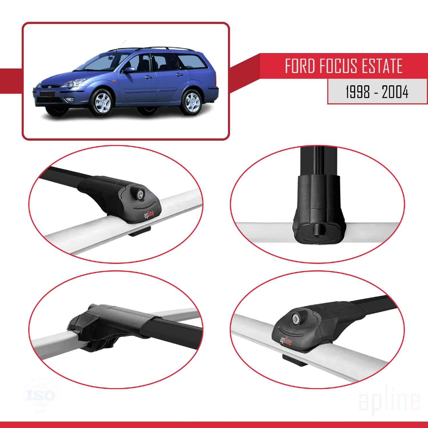 Kompatibel mit Ford Focus (C170) Kombi 1998-2004 ACE-1 Dachgepäckträger, Reling, Gepäckträger, schwarzes Aluminium, 2 Stangen