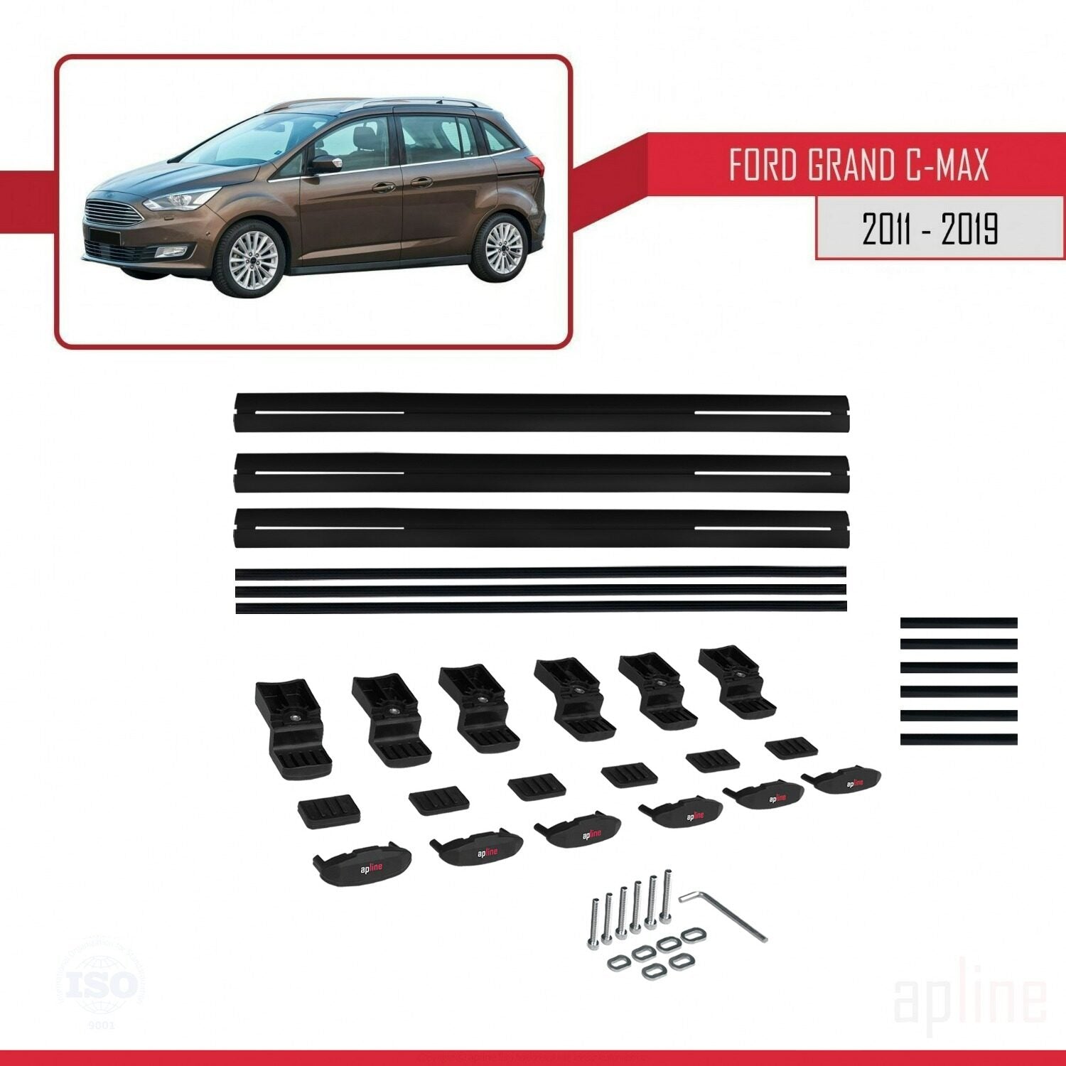 Kompatibel mit Ford Grand C-Max (C344) 2011-2019 Basismodell Dachgepäckträger, schwarzes Aluminium, 3-teilig