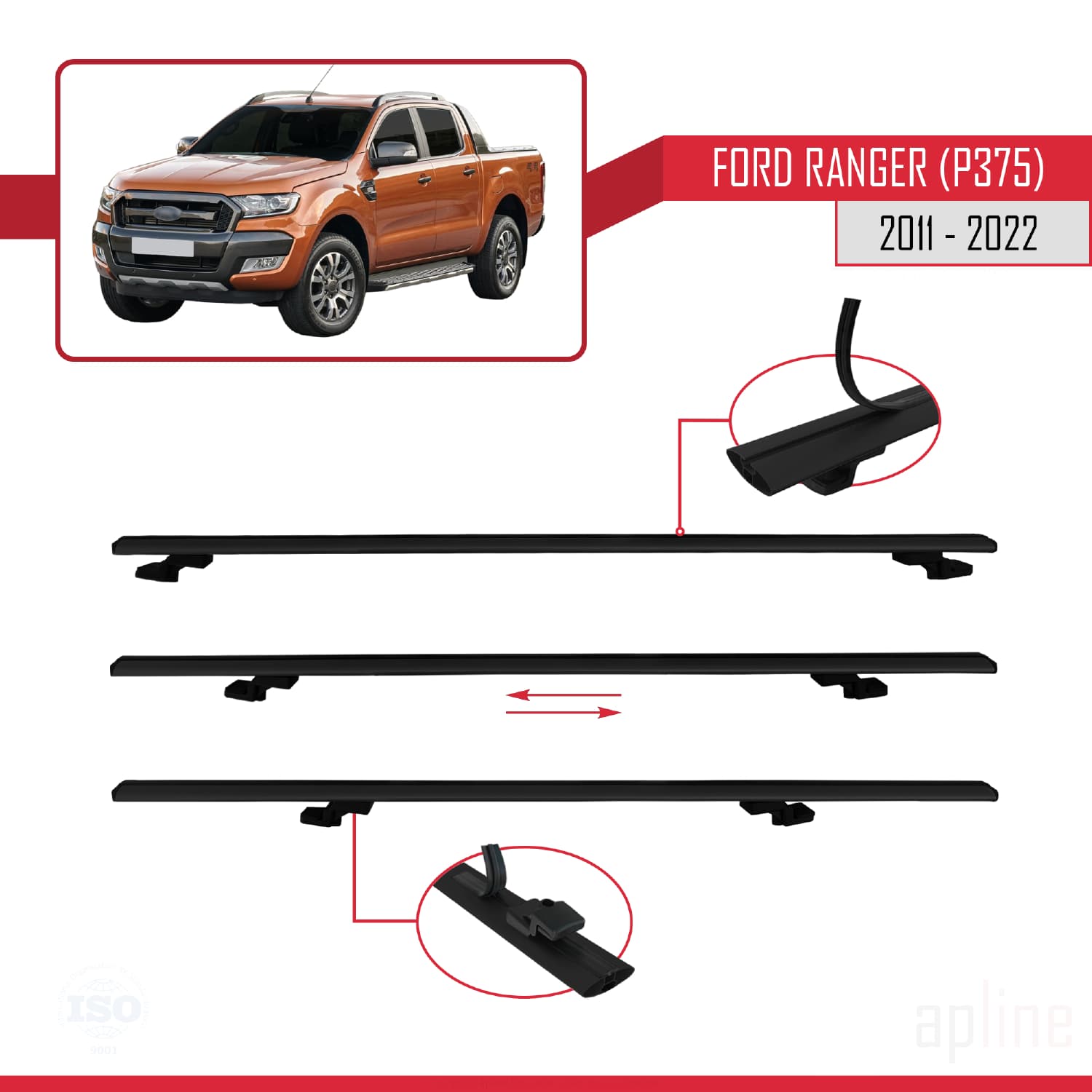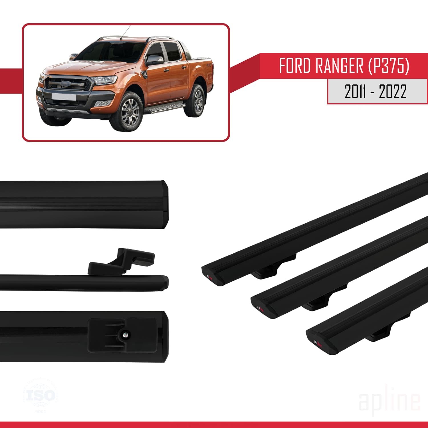 Kompatibel mit Ford Ranger (P375) 2011-2022 Basismodell Dachgepäckträger, schwarzes Aluminium, 3 Stangen
