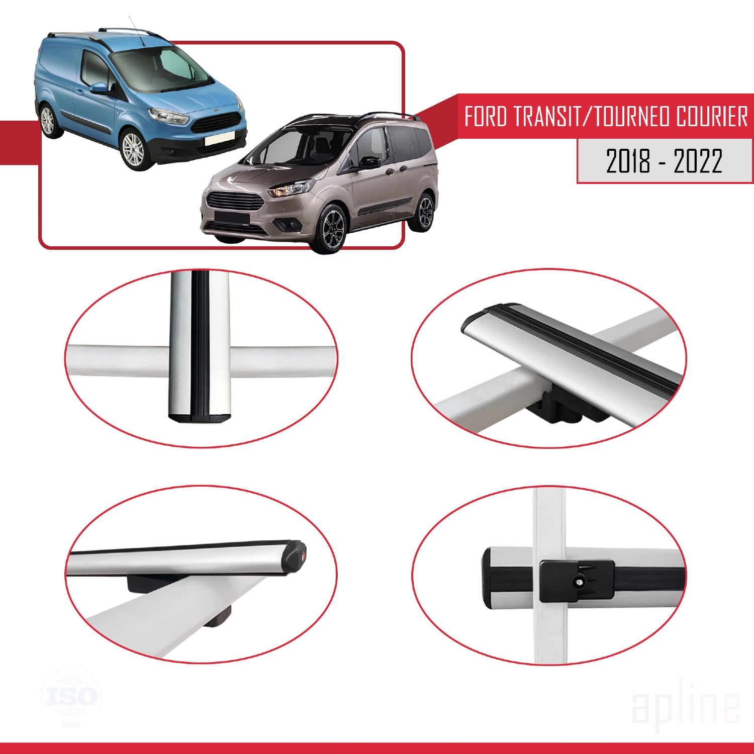 Kompatibel mit Ford Transit/Tourneo Courier nach Facelift 2018-2022 Basismodell Dachgepäckträger, graues Aluminium, 4 Stangen