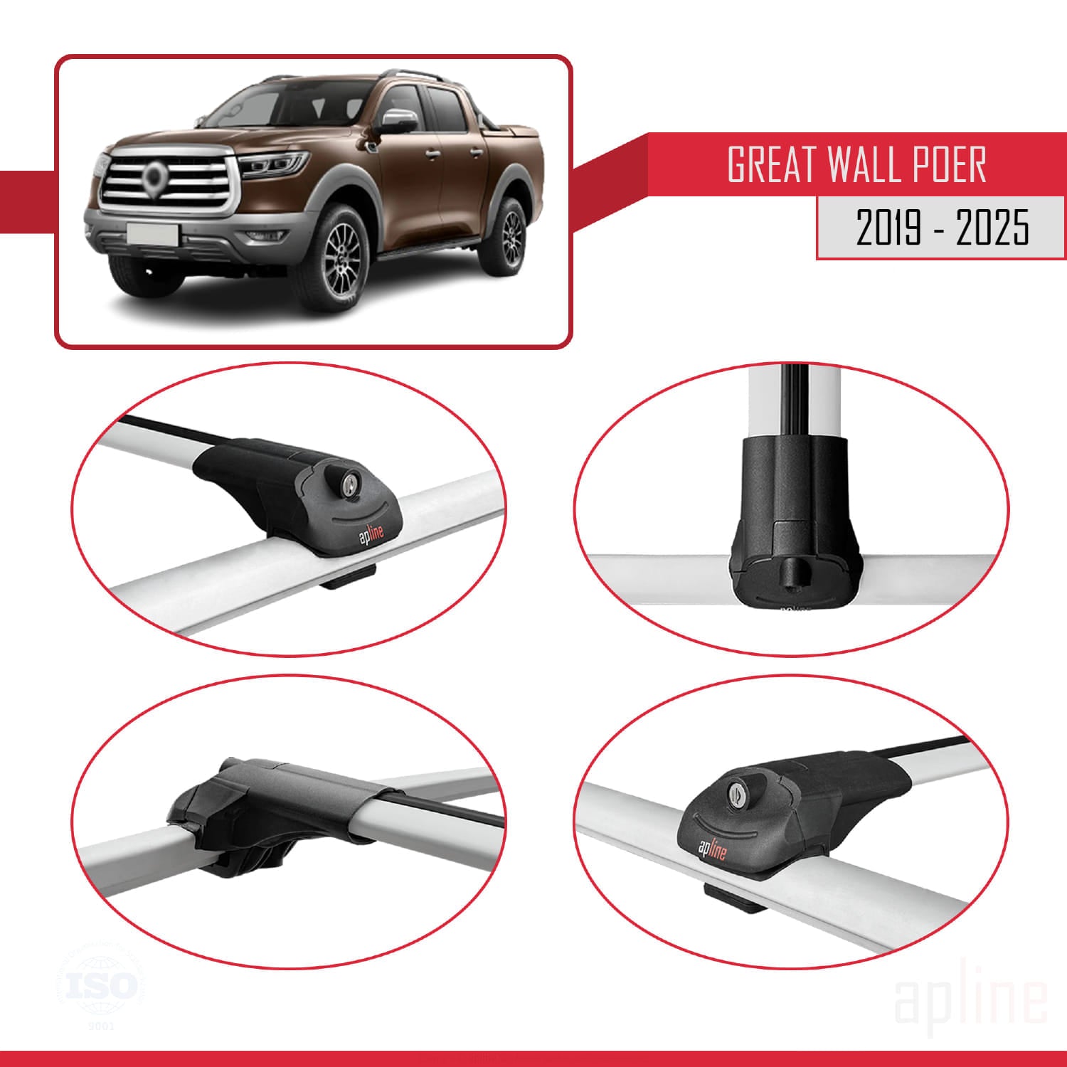 Kompatibel mit Great Wall Power 2019-2025 ACE-1 Dachgepäckträger, Reling, Autogepäckträger, graues Aluminium, 3 Stangen