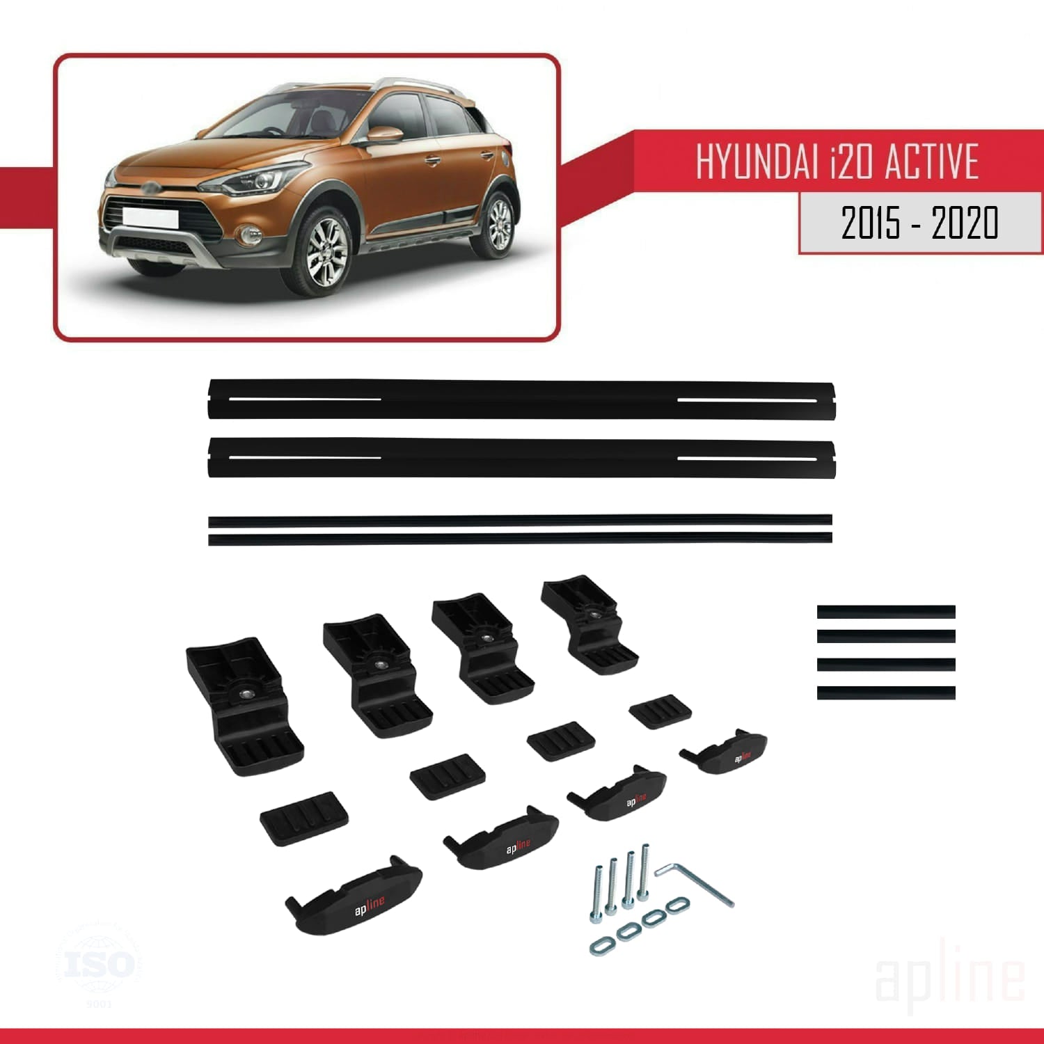 Compatible avec Hyundai i20 II Active 2015-2019 BASIC Model Barres de Toit Railing Porte-Bagages de Voiture Noir Aluminium 2 Barres