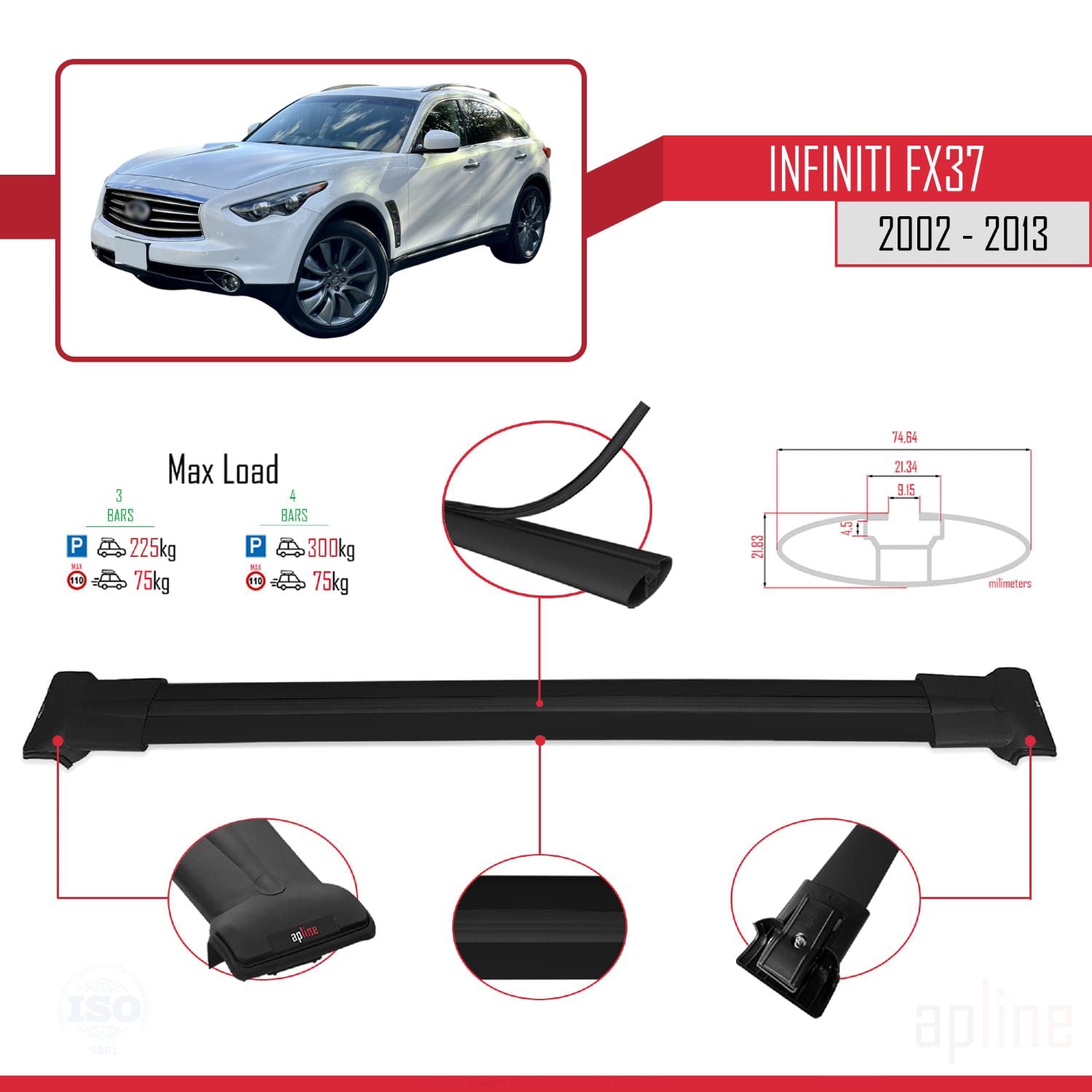 Compatible avec Infiniti FX37 2002-2013 FLY Model Barres de Toit Railing Porte-Bagages de Voiture Noir Aluminium 3 Barres