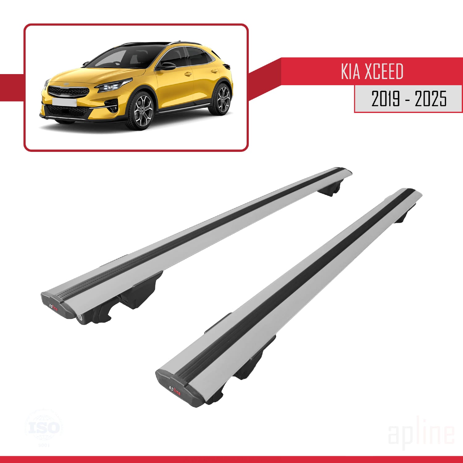 Compatible avec Kia XCeed (CD) 2019-2025 HOOK Model Barres de Toit Railing Porte-Bagages de Voiture Gris Aluminium 2 Barres
