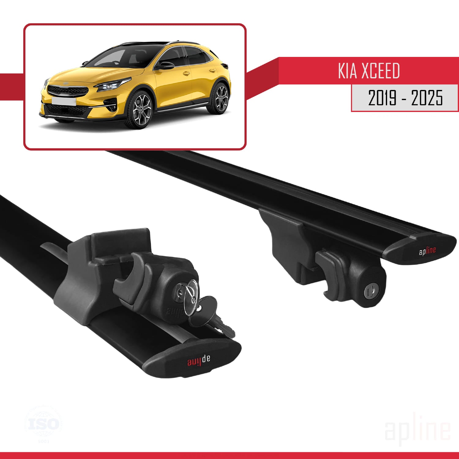 Compatible avec Kia XCeed (CD) 2019-2025 HOOK Model Barres de Toit Railing Porte-Bagages de Voiture Noir Aluminium 2 Barres