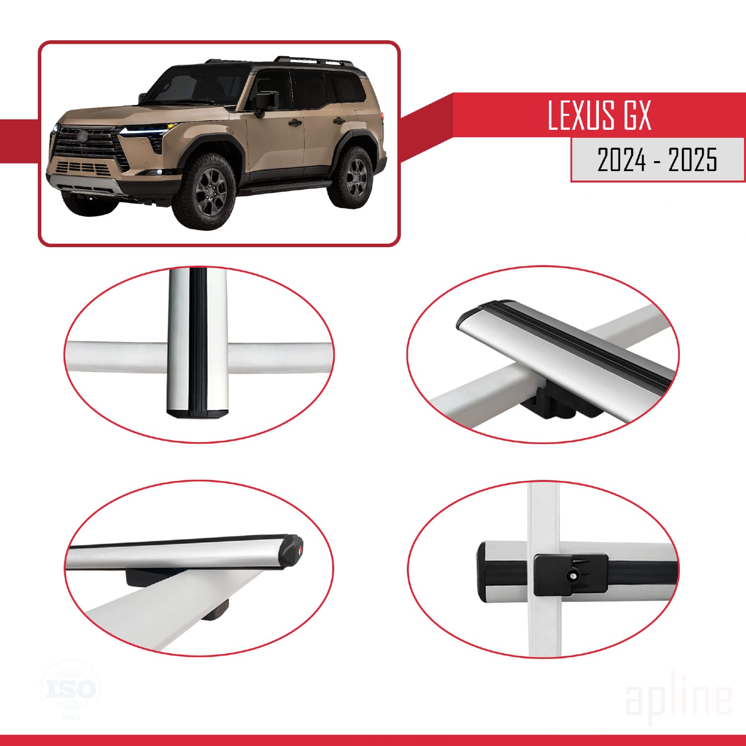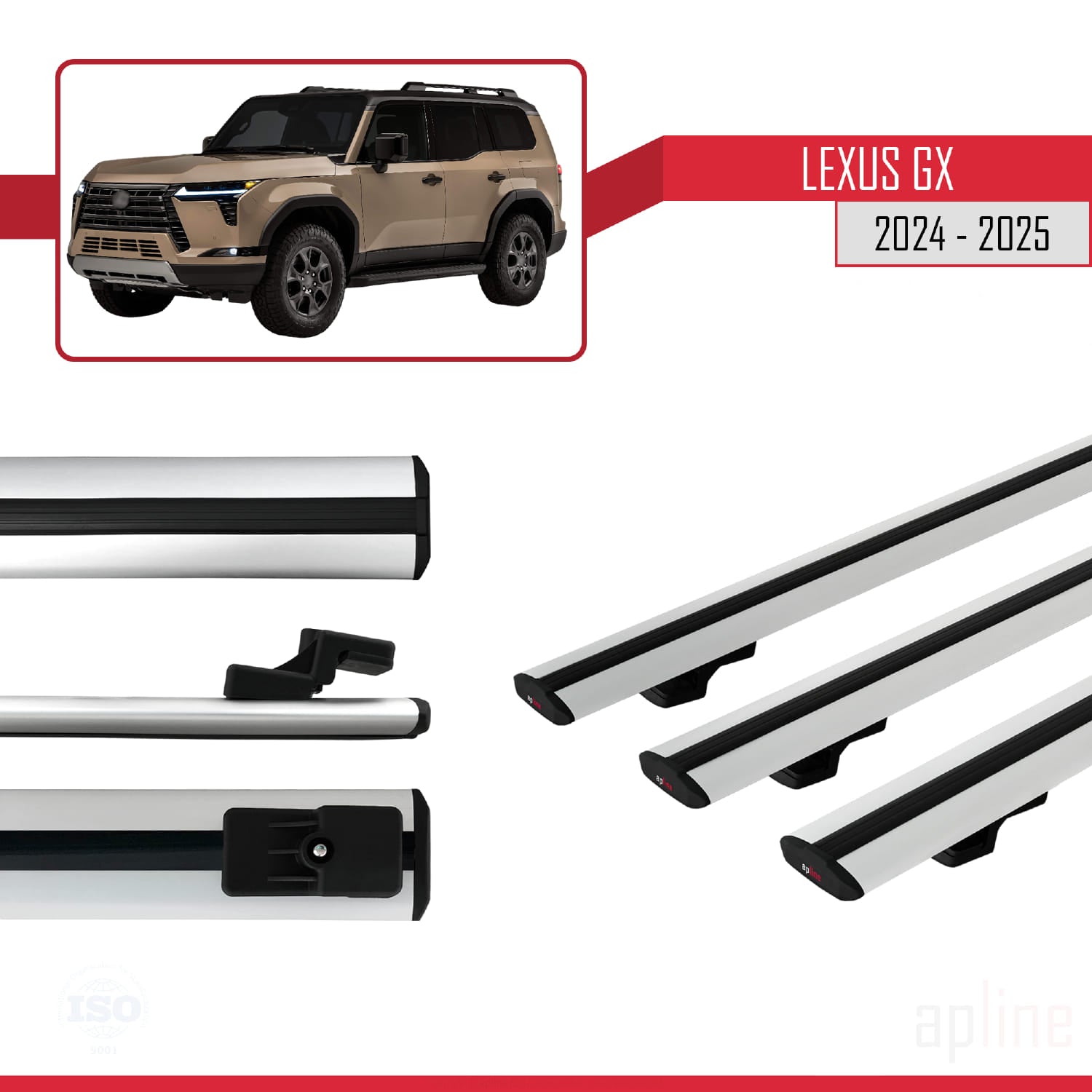 Compatible avec Lexus GX 2024-2025 BASIC Model Barres de Toit Railing Porte-Bagages de Voiture Gris Aluminium 3 Barres