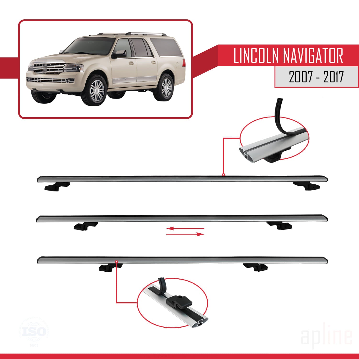 Compatible avec Lincoln Navigator 2007-2017 BASIC Model Barres de Toit Railing Porte-Bagages de Voiture Gris Aluminium 2 Barres