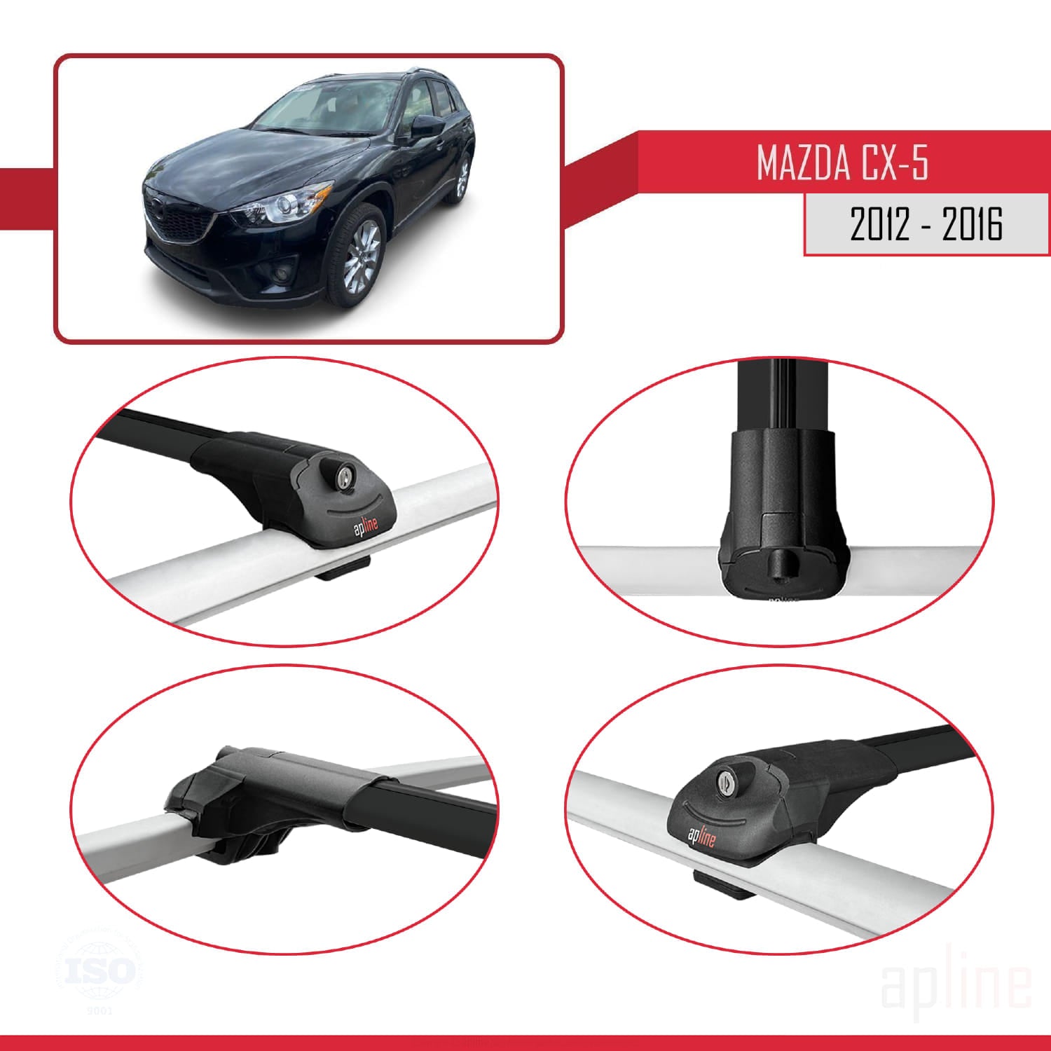 Compatible avec Mazda CX-5 I (KE) 2012-2016 ACE-1 Barres de Toit Railing Porte-Bagages de Voiture Noir Aluminium 2 Barres