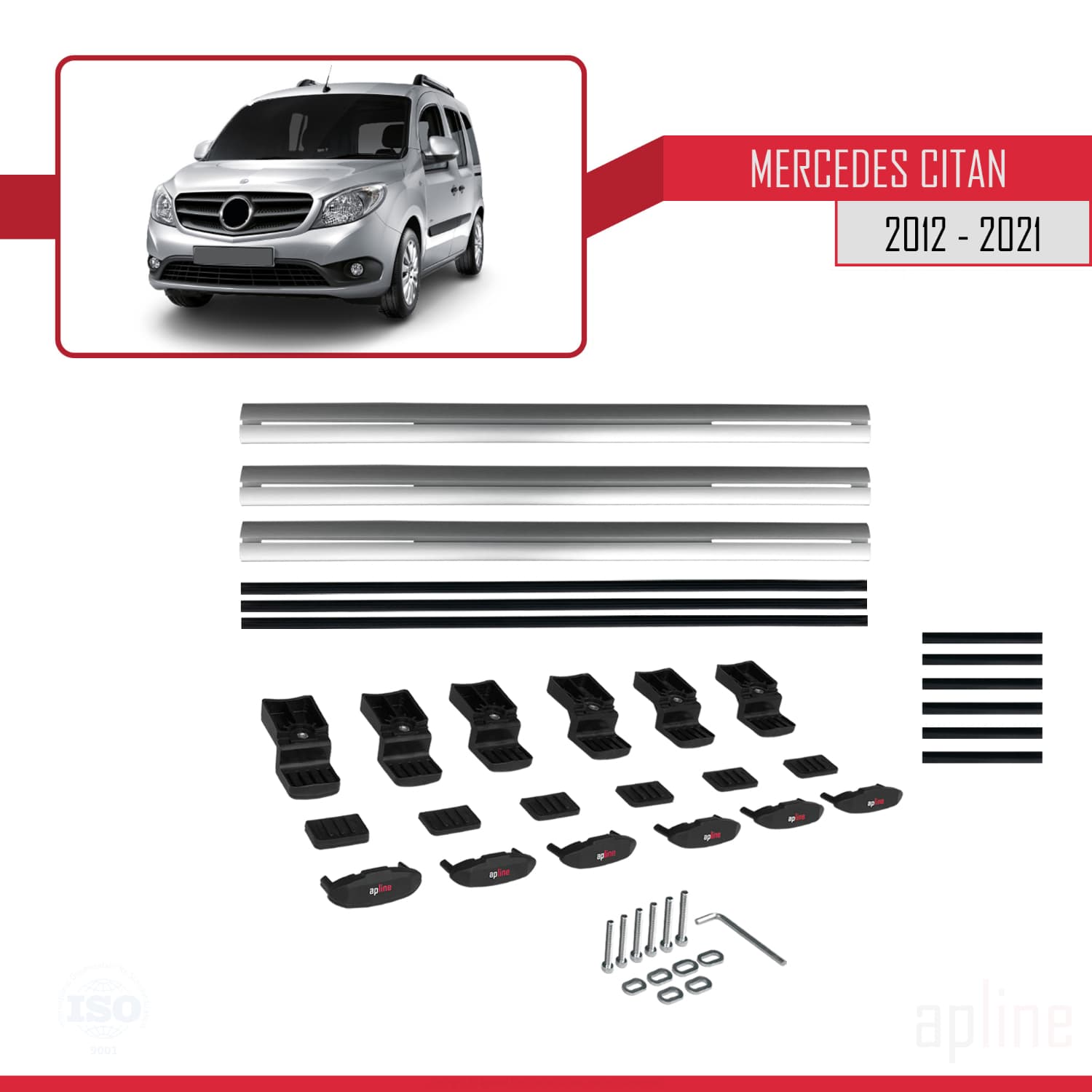 Compatible avec Mercedes Citan (W415) 2012-2021 BASIC Model Barres de Toit Railing Porte-Bagages de Voiture Gris Aluminium 3 Barres
