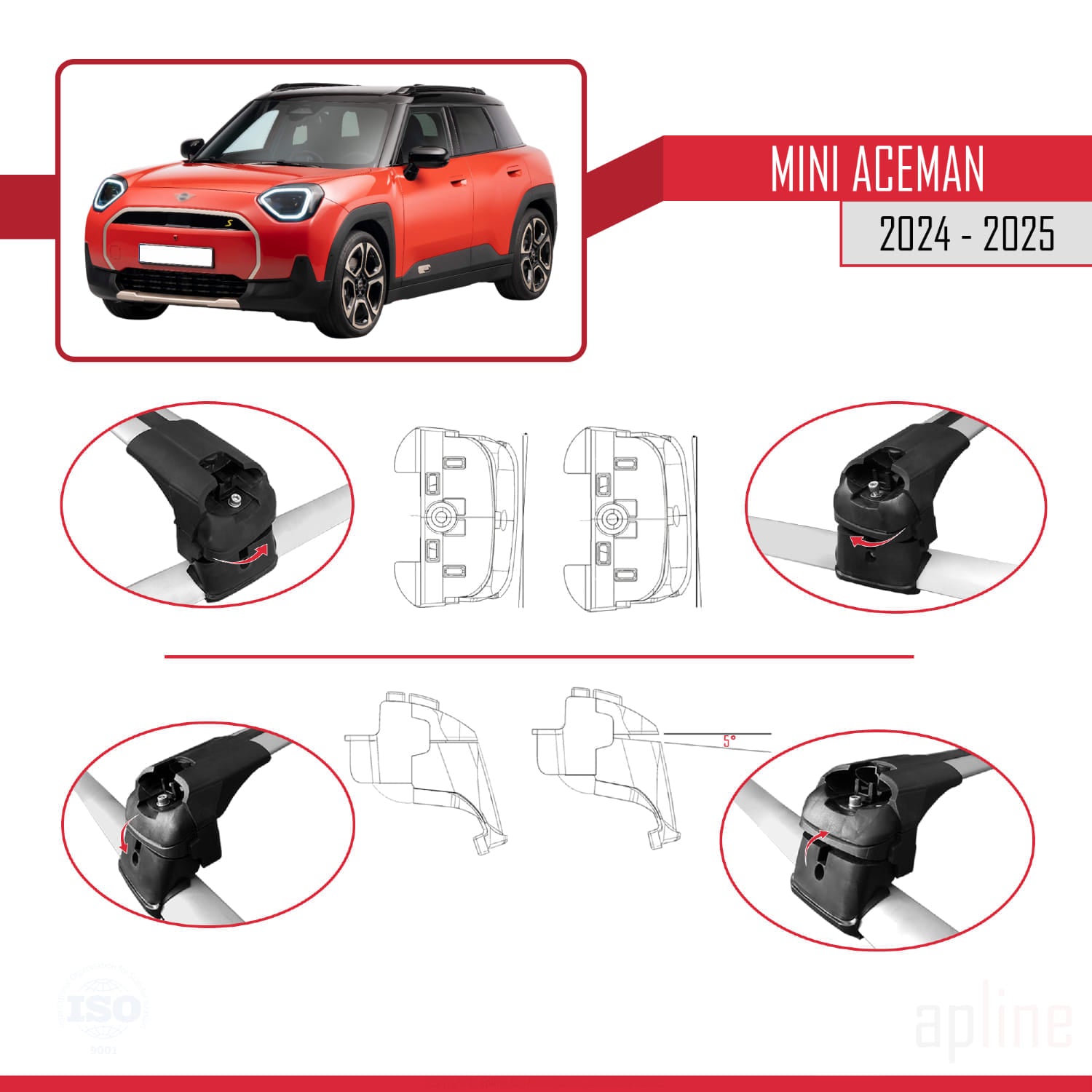 Compatible avec Mini Aceman SE 2024-2025 ACE-2 Barres de Toit Railing Porte-Bagages de Voiture Gris Aluminium 2 Barres